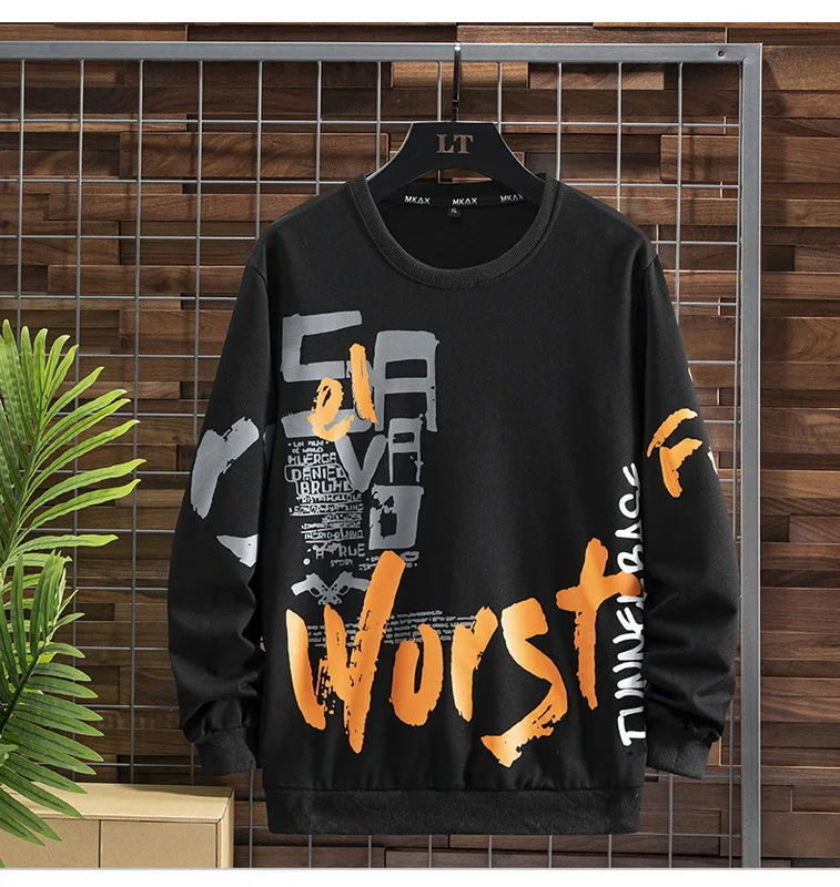 Модный свитер с круглым вырезом, Мужская Уличная одежда в стиле пэч...