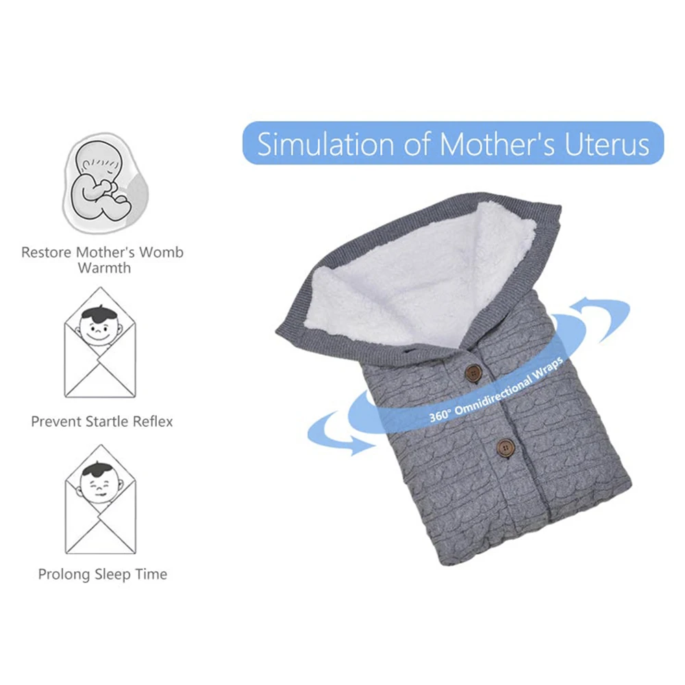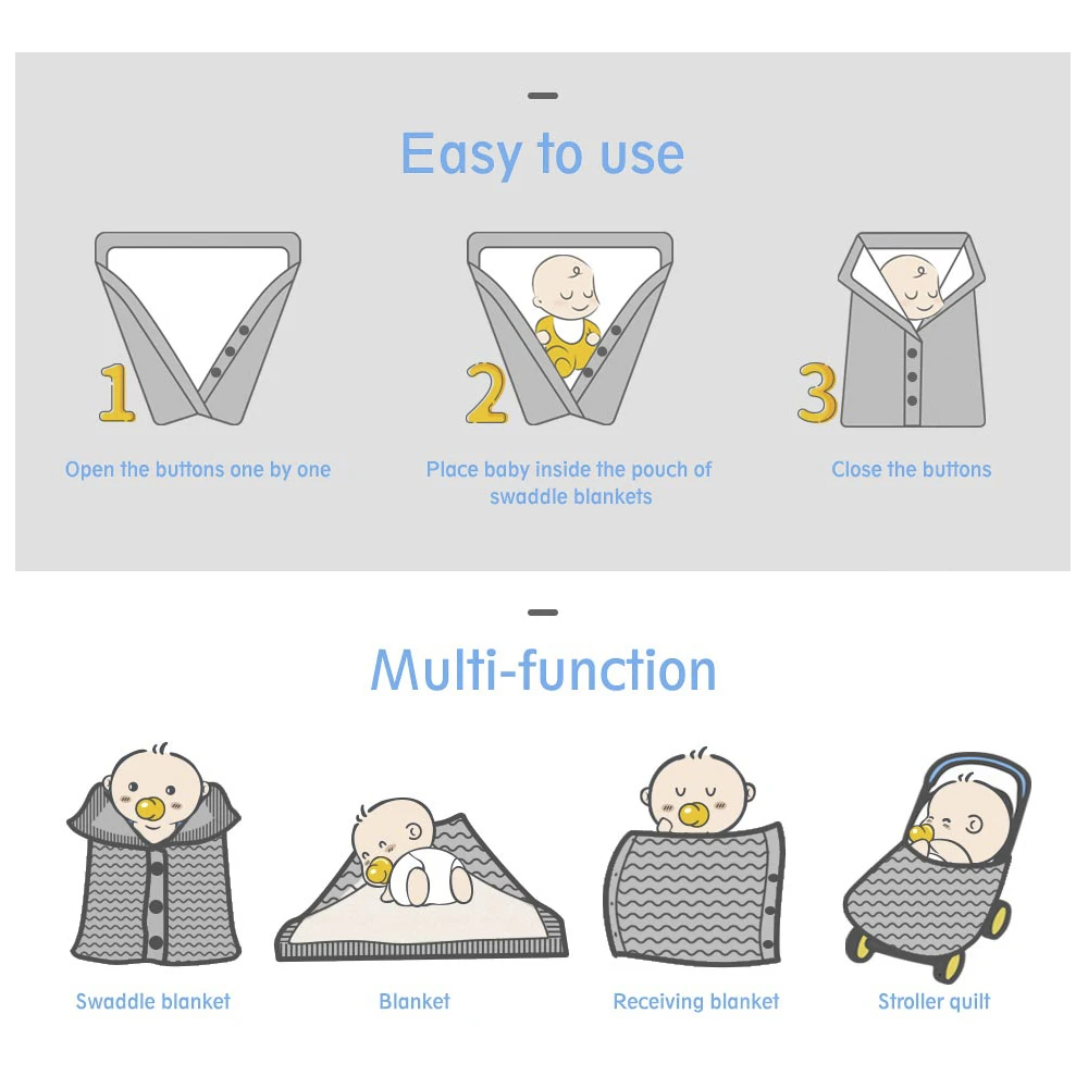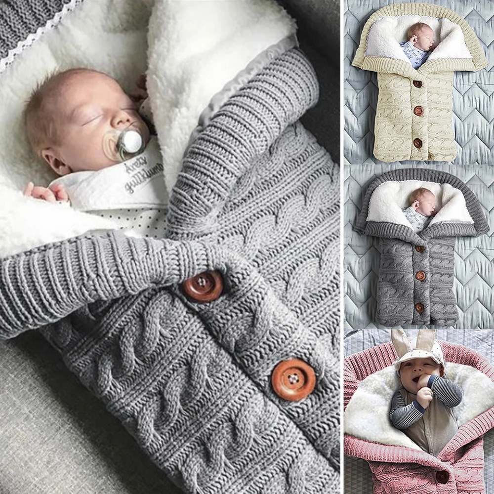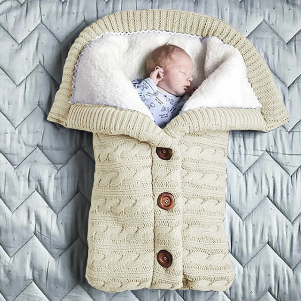 Теплые спальные мешки, спальный мешок для новорожденных, Зимний вязаный Пеленальный мешок с пуговицами для новорожденных, накидка на коляску, одеяло для малышей, спальный мешок