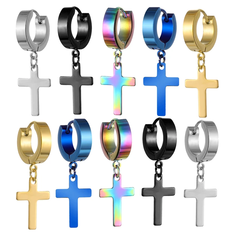Серьги без прокола в стиле панк для мужчин и женщин, висячий обруч из нержавеющей стали с крестом, 1 шт.