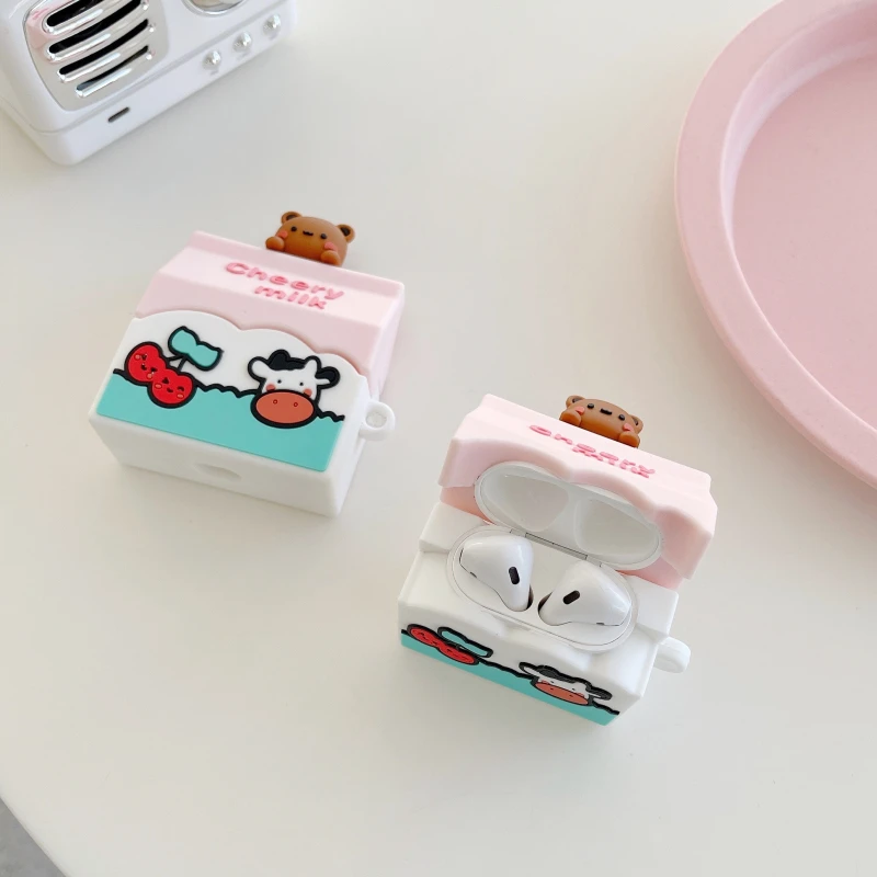 Силиконовый чехол для наушников Apple Airpods 1, 2, 3 Pro, чехол для наушников, с изображением милых бутылочек, молочного цвета, защитный чехол