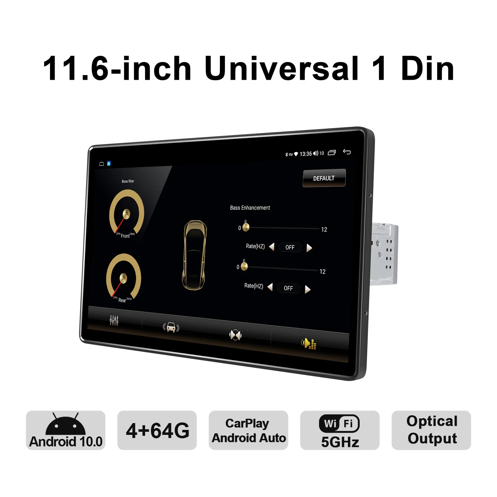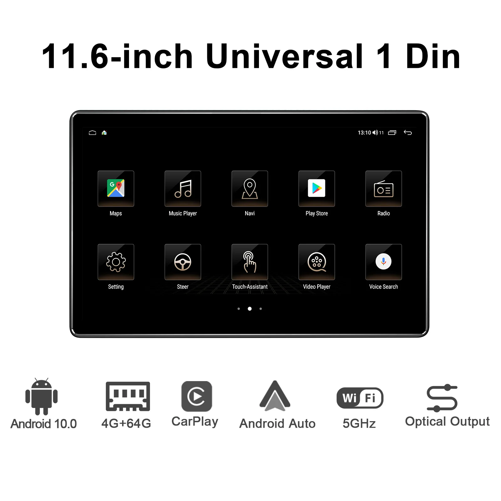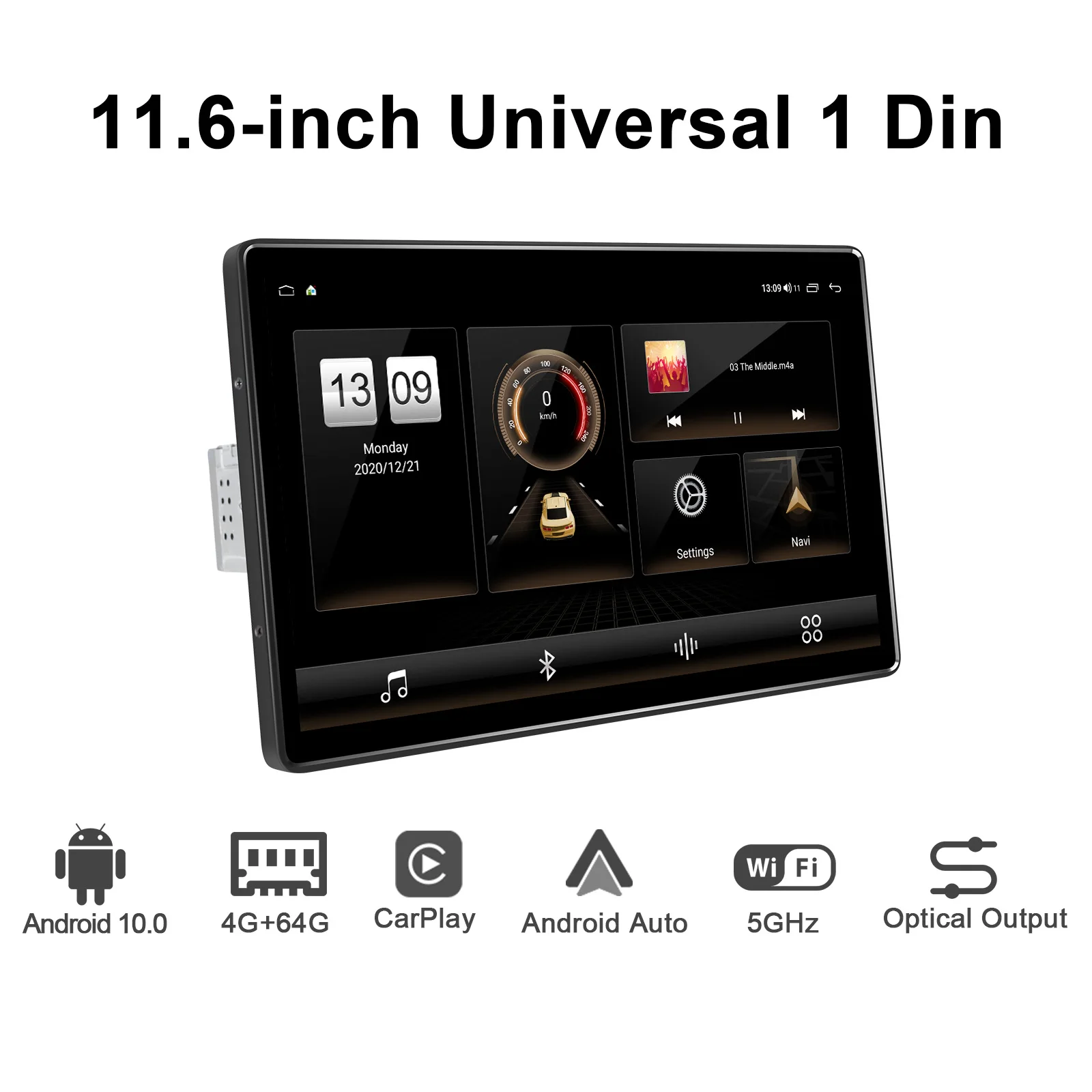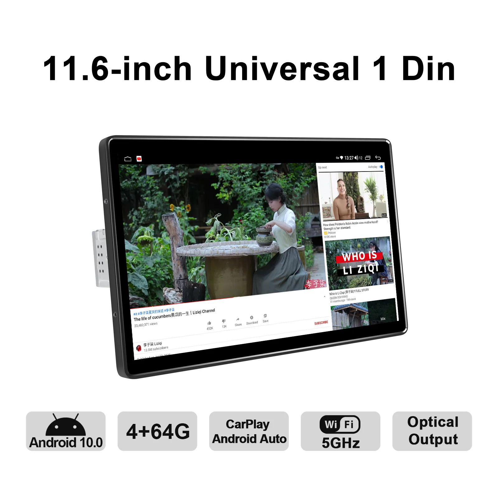 Автомобильный радиоприемник, 11,6 дюйма, Android 10, 1 din, универсальный стереоприемник, 1920*1080, 6 ГБ, 128 ГБ, GPS-навигатор, беспроводной Автомобильный плеер