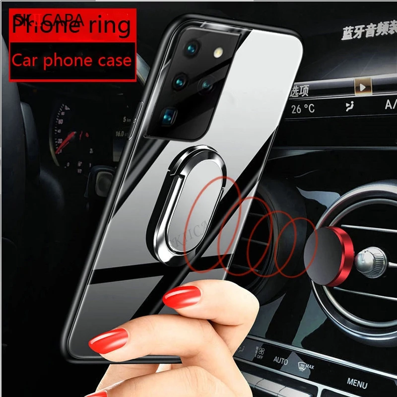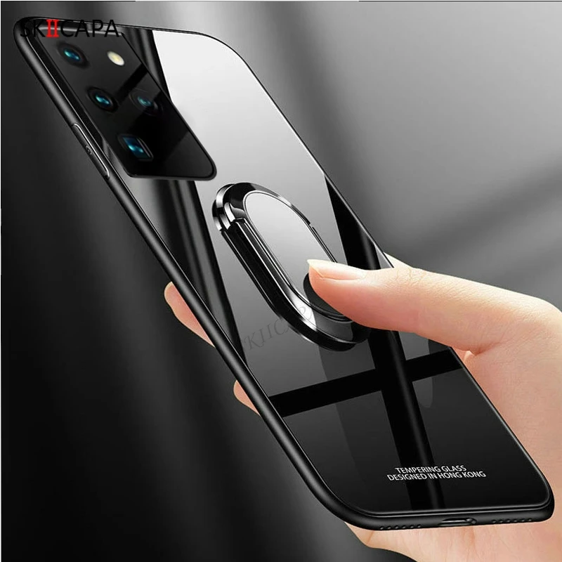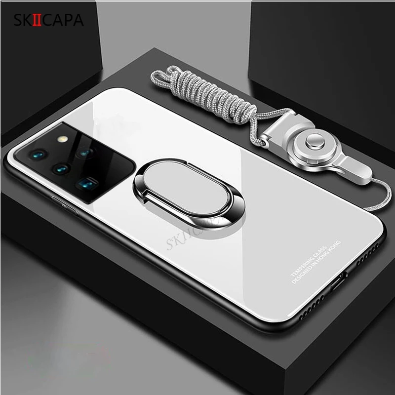 Чехол для телефона из закаленного стекла для Samsung Galaxy S21 Ultra S20 FE Магнитный кольцевой Держатель подставка чехол для телефона Samsung S20 Plus