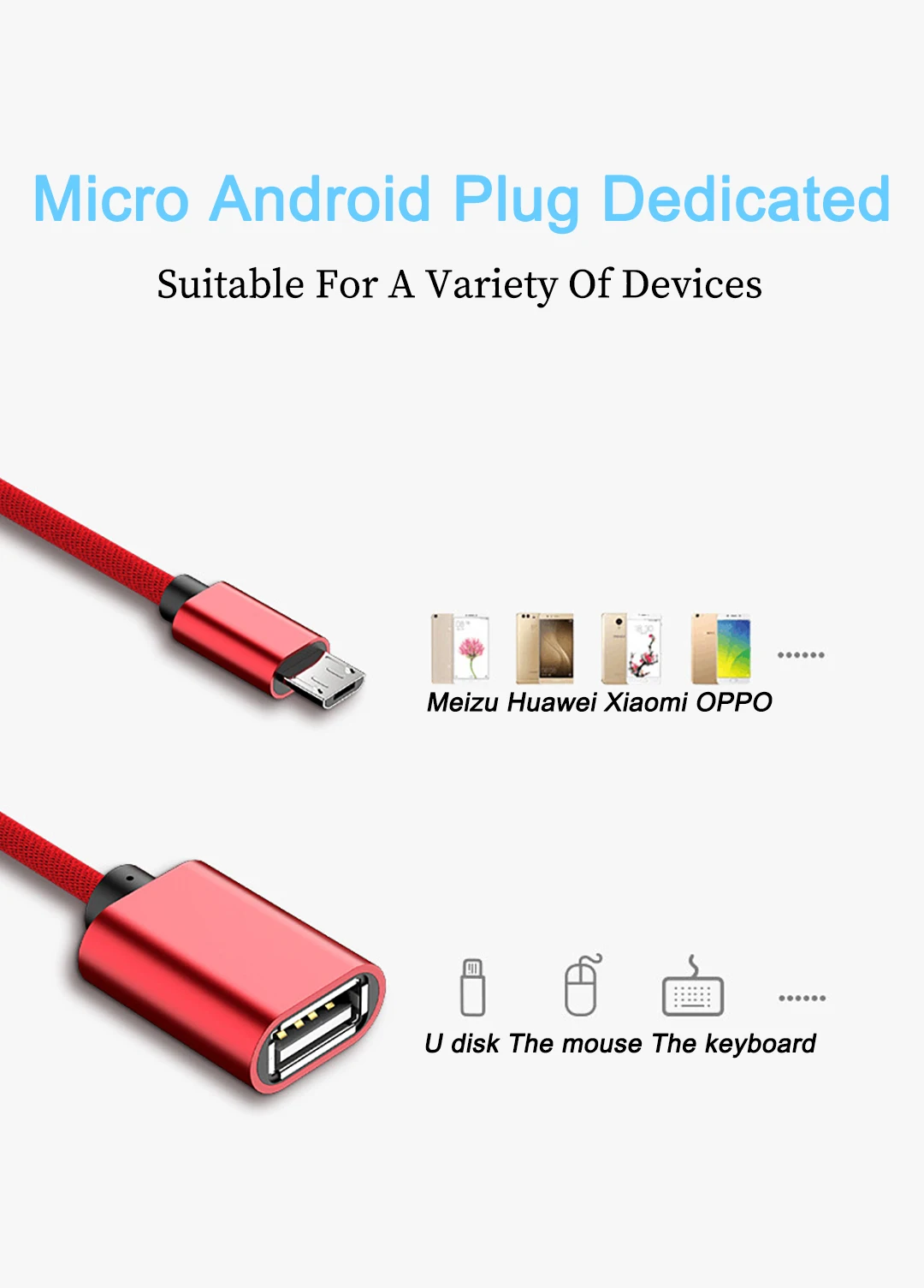 Микро-USB кабель OTG со штекером Micro USB на гнездо USB 2,0 адаптер для Samsung Huawei Android флэш-накопитель для клавиатуры плетеный шнур