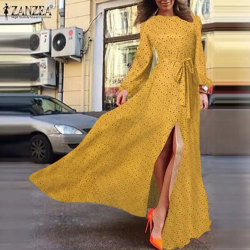 Осеннее длинное платье в горошек ZANZEA, винтажное женское платье и...