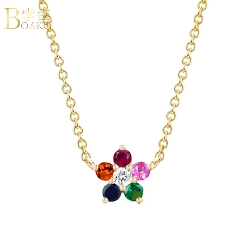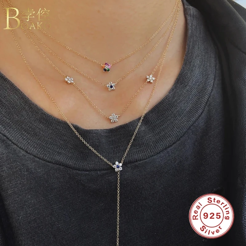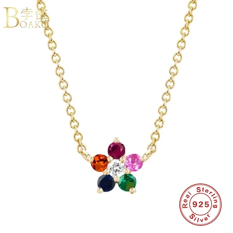 Женское Ожерелье с кулоном BOAKO Rainbow CZ, ожерелье из стерлингового серебра 925 пробы, ювелирные изделия, цепочка-чокер, ожерелье, бижутерия, ошейники