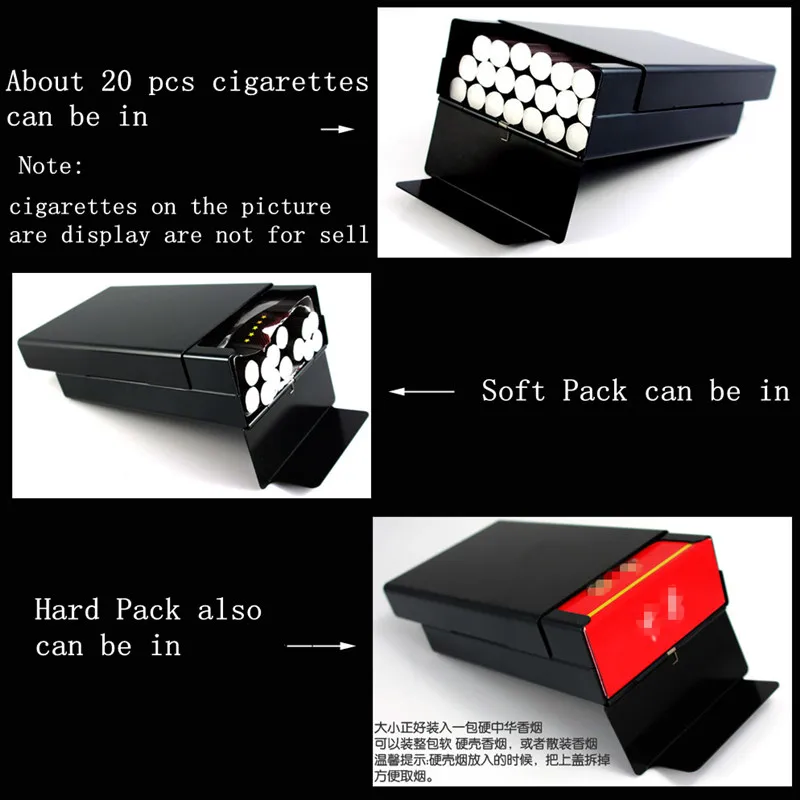 Посылка включает в себя: чехол для сигареты x 1 Подходит: подходит только для сигареты обычного размера (не 100 мм или тонкие сигареты) Размер: 90x58x26мм Материал: алюминиевый сплав Вес нетто: около 40 г