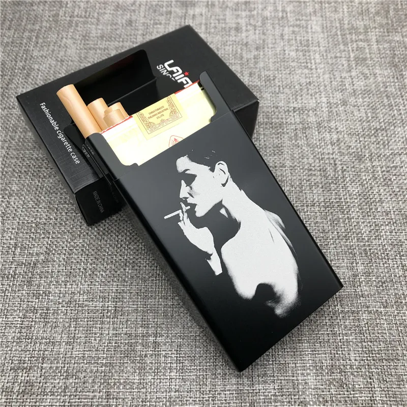Леопардовой раскраски, Somking девушка алюминиевый сплав сигареты чехол Коробки ультра тонкий сигареты коробки лазерной гравировкой Diy свою фотографию подарок