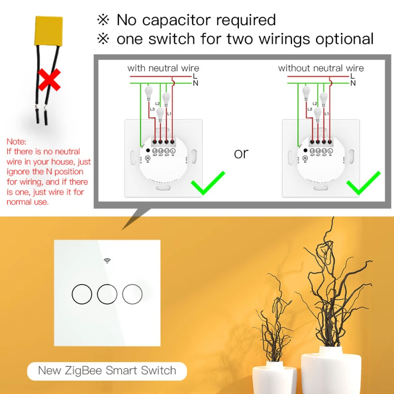 Этот новый дизайн смарт-переключатель с 1/2/3 дополнительно разработан с ZigBee протокол для того, чтобы заменить традиционные переключатели с различные способы контроля. Один переключатель для двух колец опционально (N + L провод/только L провод) и ZigBee концентратор требуется для нормального использования. Теперь одна новая функция смарт-управления (только для N + L провода) к другим смарт-переключателям-это приложение addedinto smart Life/Tuya, и все режимы управления работают без каких-либо помех. Lts дизайн подходит для различных стилей украшения с его лучшим значением.