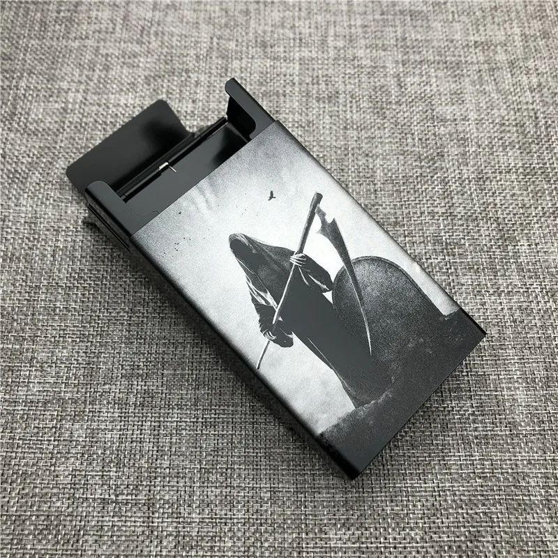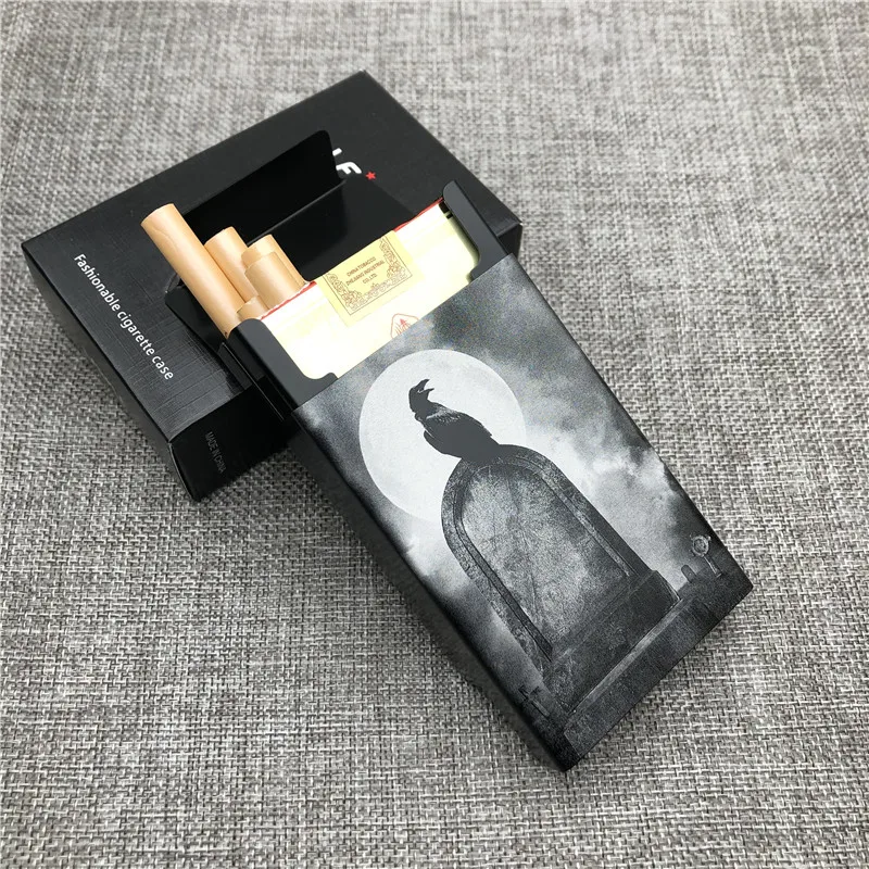 Леопардовой раскраски, Король смерти алюминиевый сплав сигареты чехол Коробки ультра тонкий сигареты коробки лазерной гравировкой Diy свою фотографию подарок