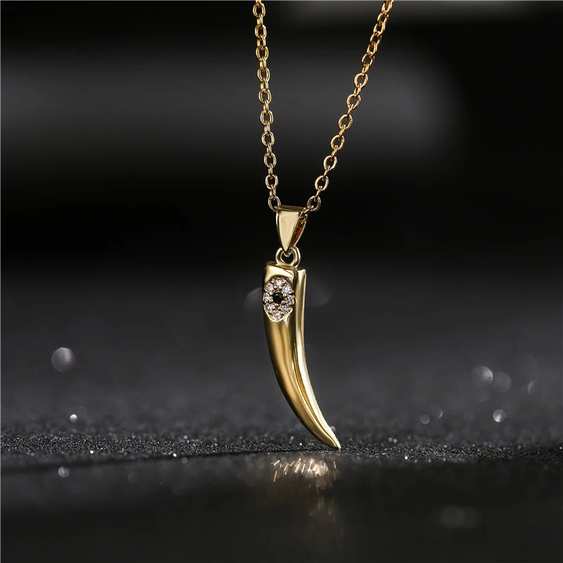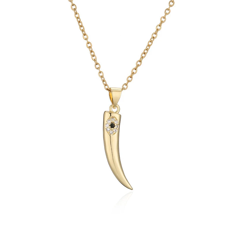 WTLTC простой золотистый Металлические рожки кулон ожерелья Femme Падение Кубического циркония глаз Чокеры Мода звено цепи многослойное ожерелье