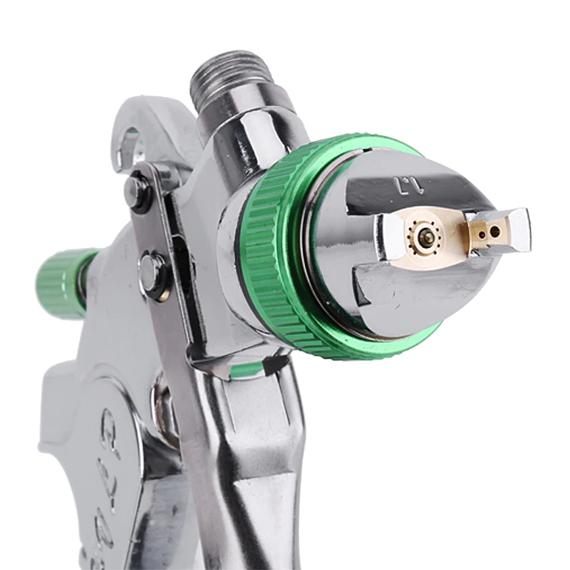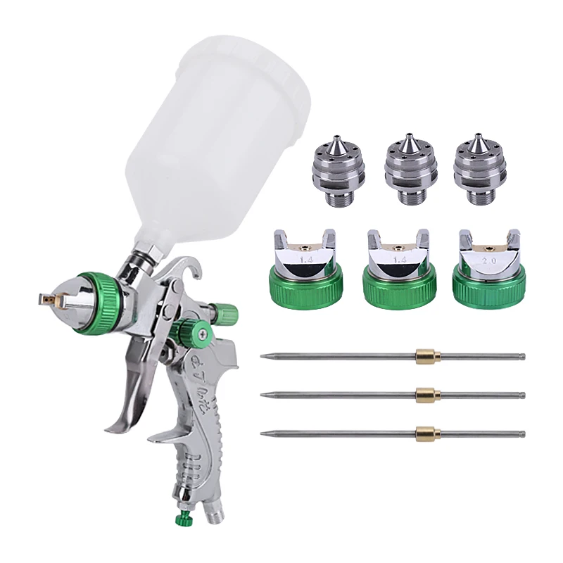 Рекомендуется для идеального распыления базового покрытия, прокладок и других высоковязких покрытийПодходит для бытового и промышленного грунтовки, верхнего покрытия и детализации для автомобильной промышленности, оборудования и мебельной краскиХарактеристики продукции:Материал распылителя: алюминиевый сплавМатериал чашки: ПВХЦвет: зеленыйТип: высокий объем низкого давленияСопло жидкости: 1,4 мм, 1,7 мм, 2,0 ммРасход воздуха: 14.5CFMОперационной Давление: 2-3,5 барШирина узора: 160-240 ммРазмер бункера: диаметр 10 смВоздухозаборник: 1/4 дюймаЕмкость чашки: 600cc
