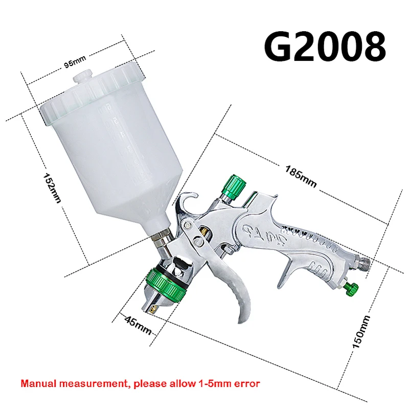 1. Все медные крышки потокаВсе медные крышки потока, металлический сердечник клапана, износостойкие и коррозионно-стойкие, дизайн 15 отверстий, тонкая распыление.2. Детали наконечника иглыПосле специальной обработки, функция уплотнения хорошая, и срок службы длинный.3. Прочный аэрозоль можетИспользуйте Высококачественный ПВХ-материал, прочный и устойчивый к падению, с ясным масштабом, долгим сроком службы и удобной чисткой. 600cc ПВХ чашка позволяет просматривать уровень жидкости краски.4. Клапан регулирования диапазона потокаНескользящая конструкция, регулируемая герметичностьКлапан регулирования потока (Ослабление: больше краски на выходе, затяжка: меньше краски на выходе)Клапан регулирования диапазона распыления (Ослабление: большой диапазон распыленияЗатяжка: малый диапазон распыления)