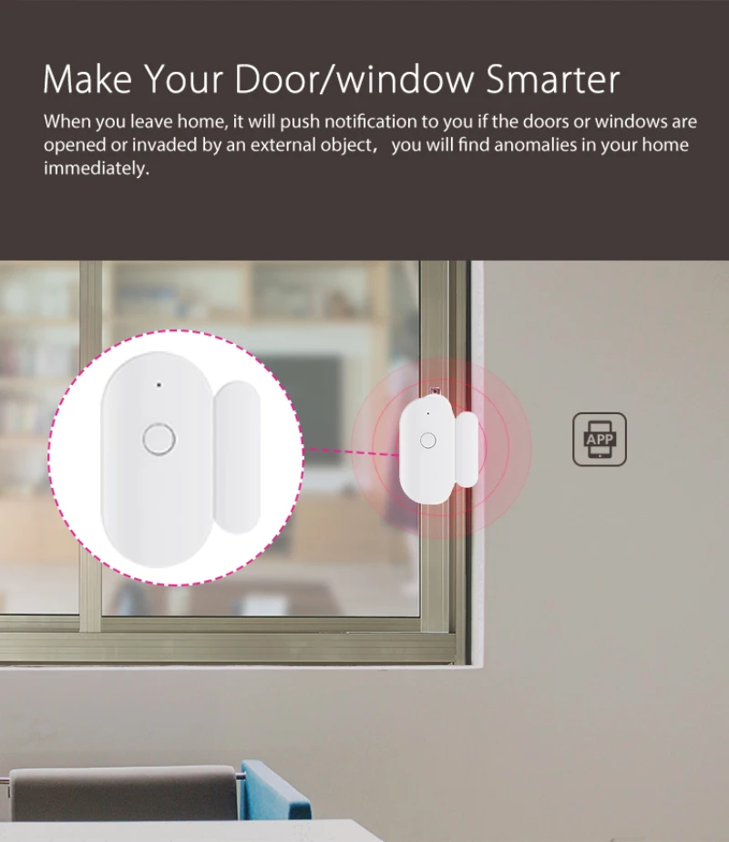 【Обнаружение состояния двери/окна 】когда дверь/Окно открывается или закрывается, устройство срабатывает и нажимает уведомление на телефон.