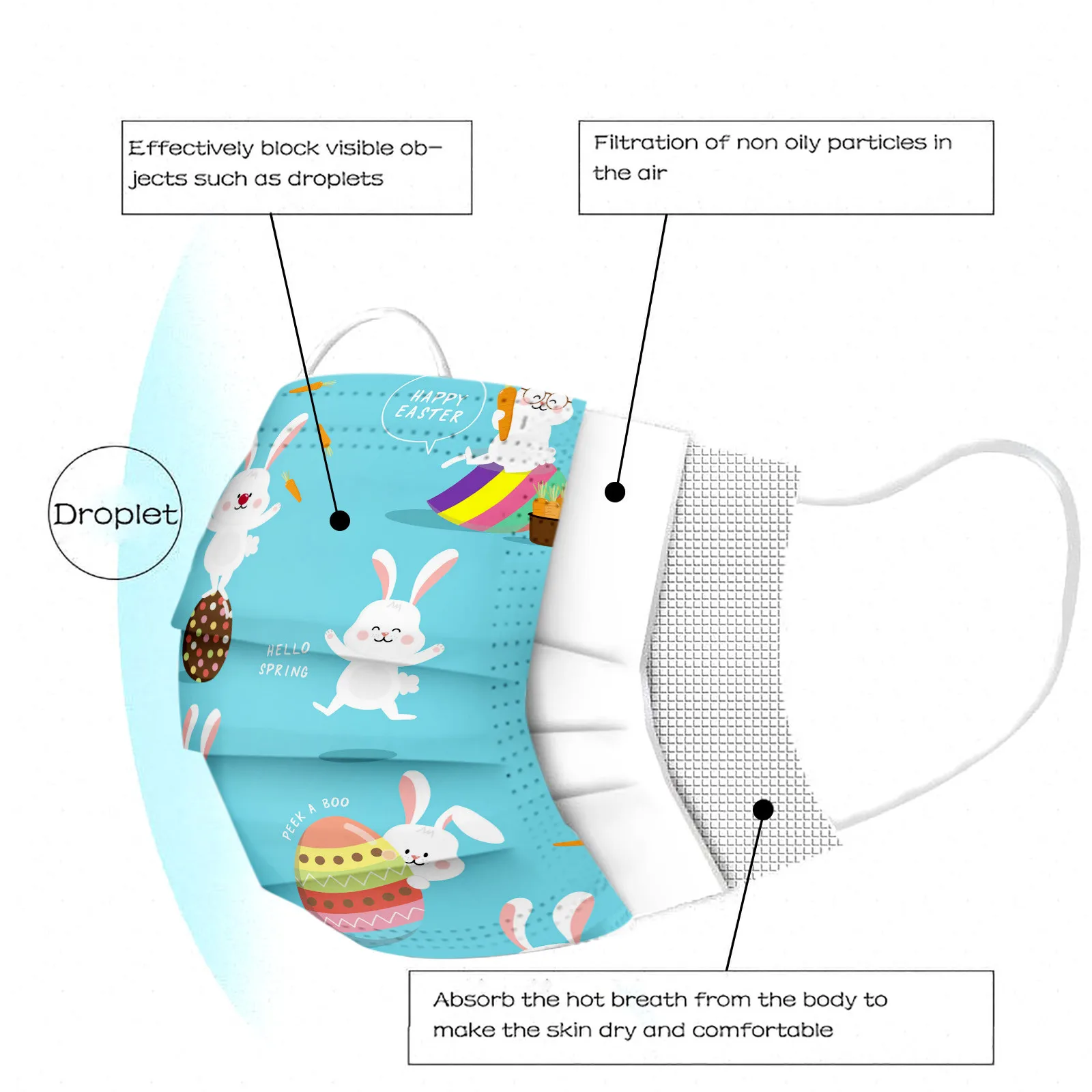 Маска для лица, трехслойная, с рисунком кролика, 10-50 шт.