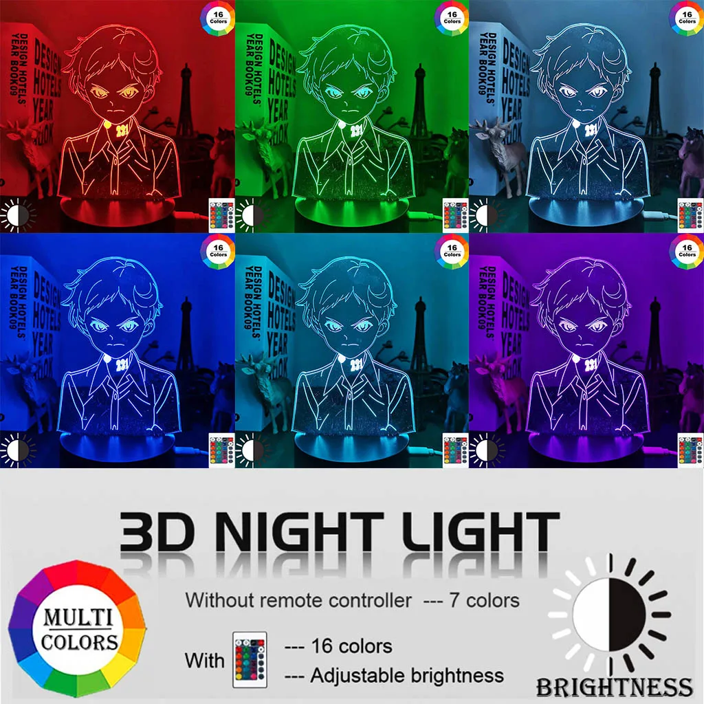 Японский Манга обещанный нетландия Эмма фигурка 3D светодиодный ночсветильник домашнего декора комнаты Дети Детский Светильник Ник прикроватная настольная лампа