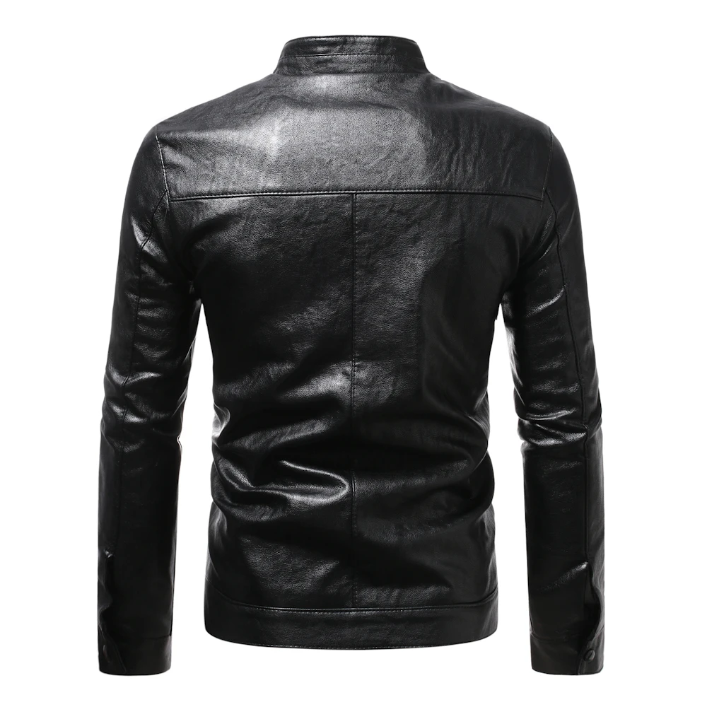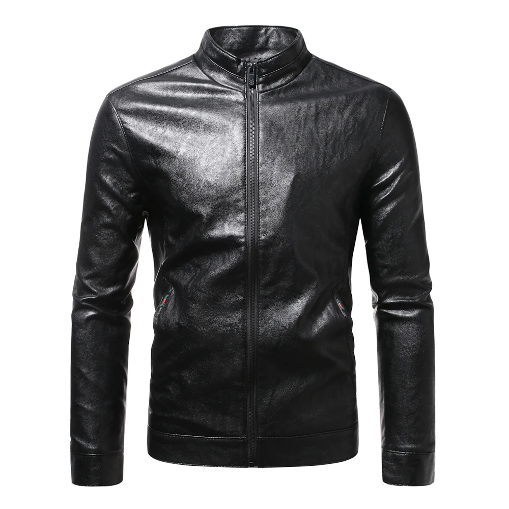 Мужская мотоциклетная куртка из искусственной кожи, однотонная приталенная куртка из искусственной кожи на молнии, с воротником-стойкой, весна-осень 2021