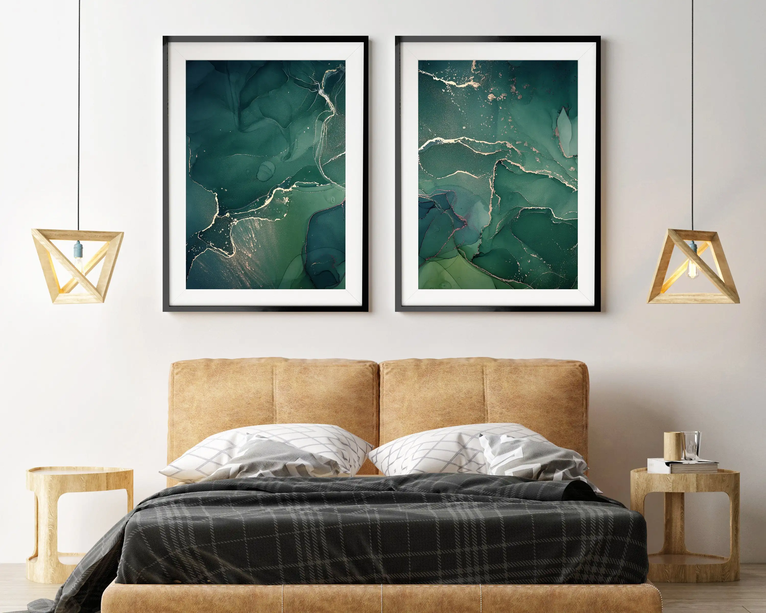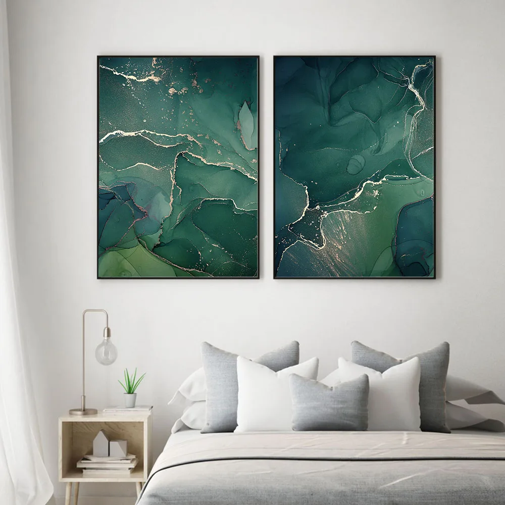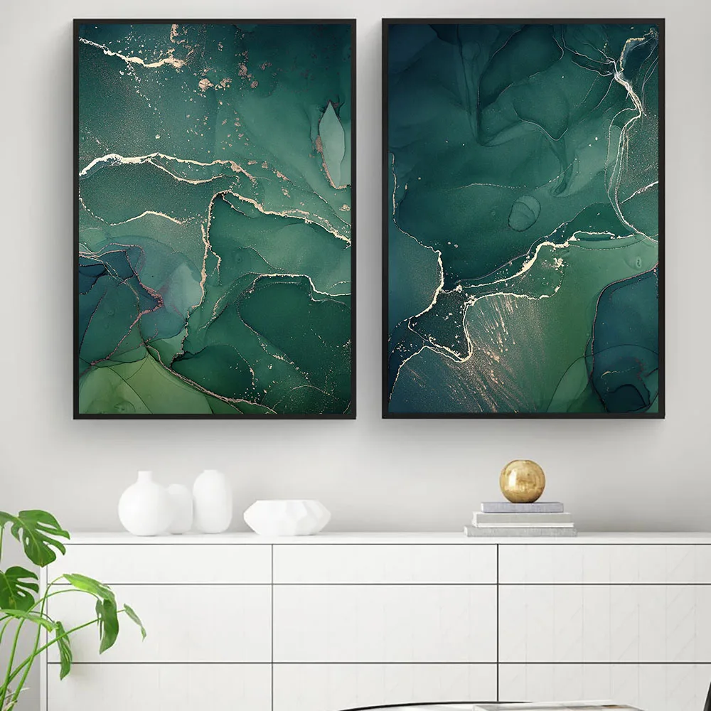 Минималистский абстрактный настенный плакат Современный стиль холст печать зеленая и Золотая живопись Современная художественное оформление комнаты картина
