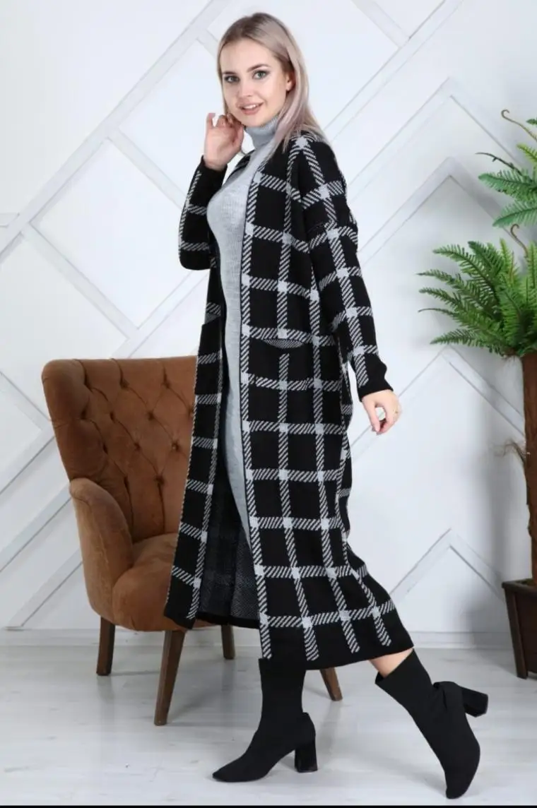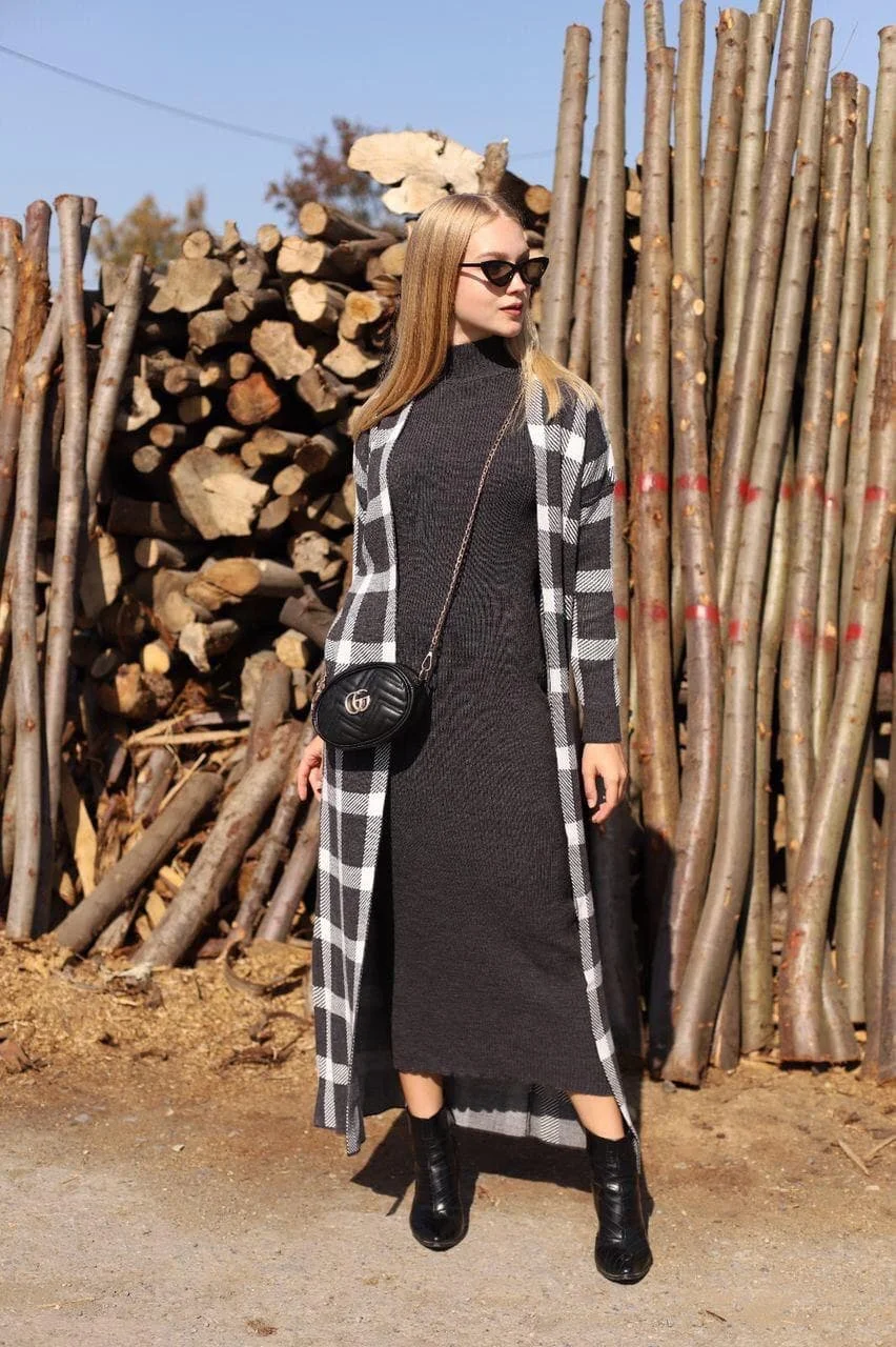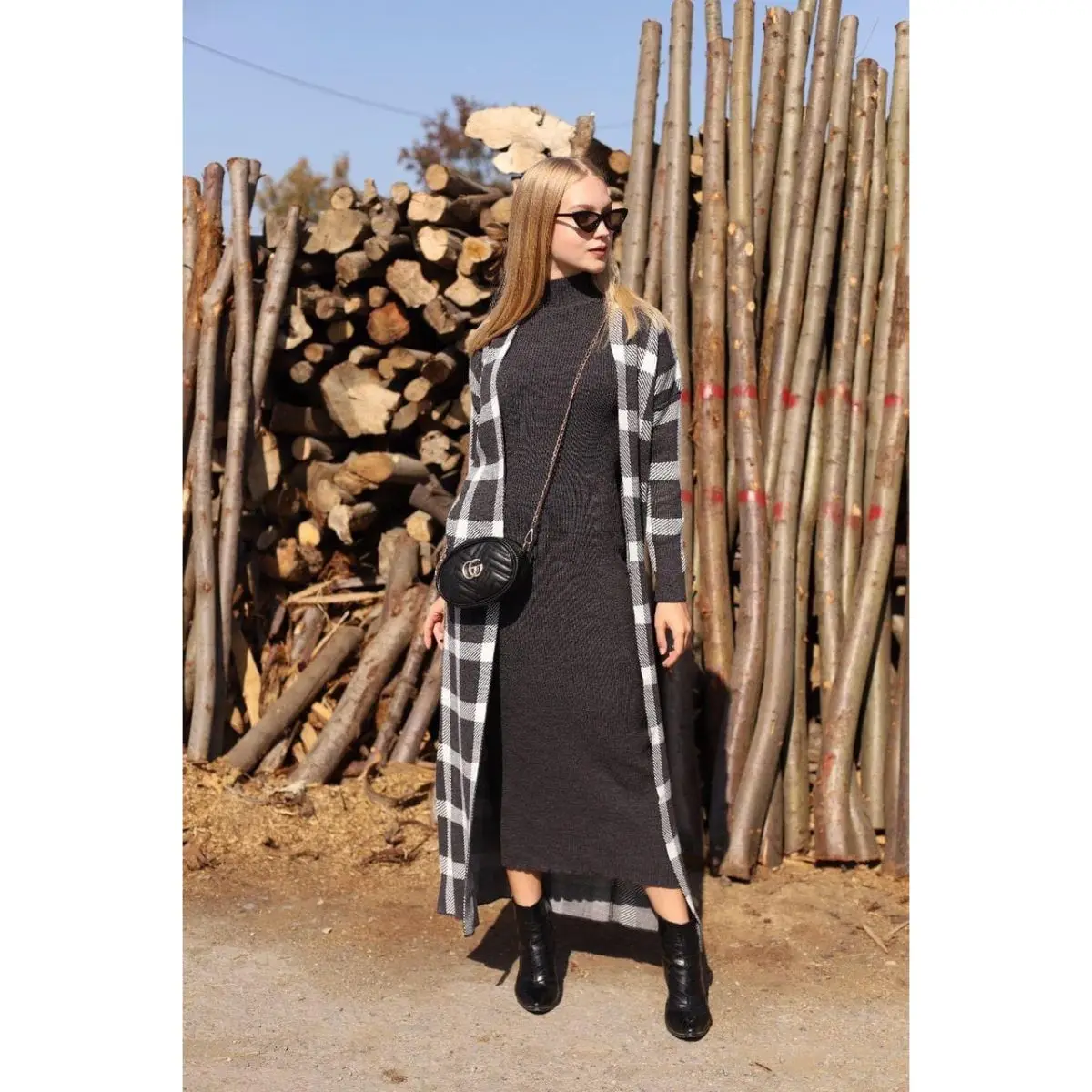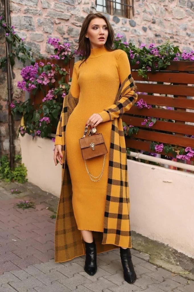 Женский комплект из водолазки с квадратным вырезом, Макси-платья и кардиганы, осенний комплект из 2 предметов