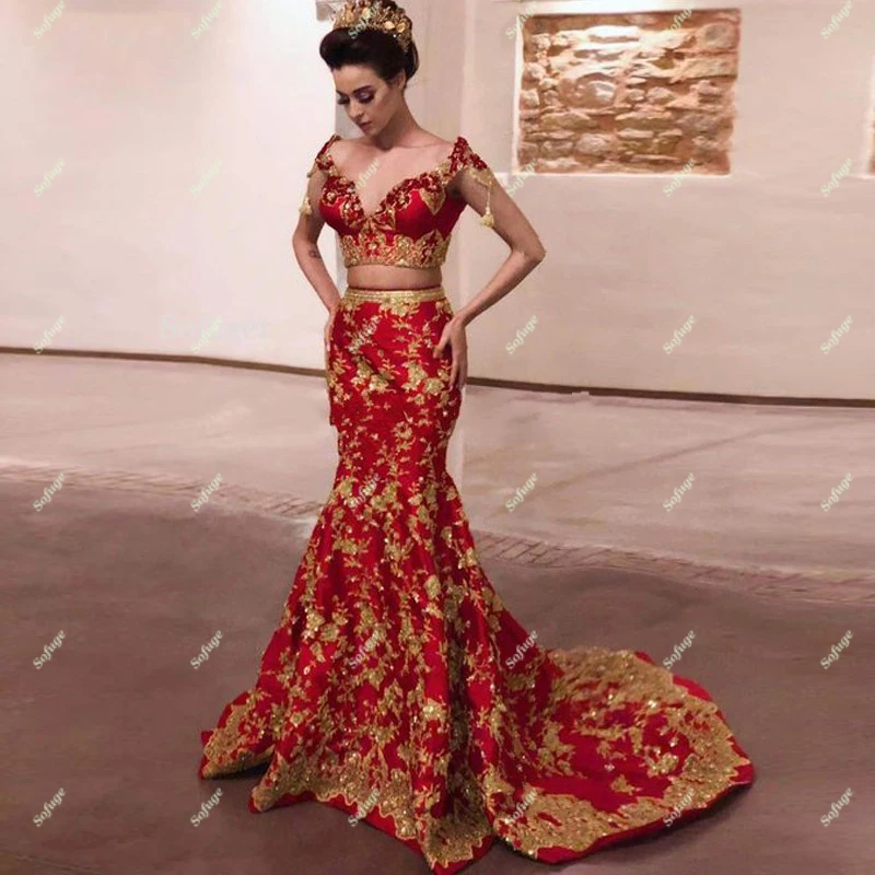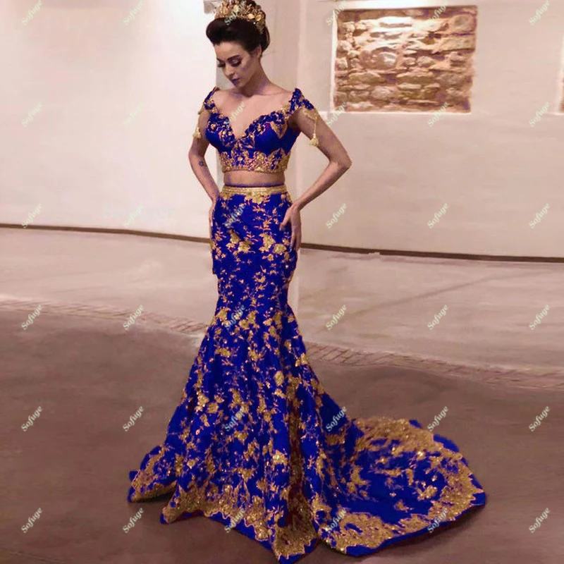 Женское Свадебное платье из двух частей, темно-синее атласное платье с золотыми аппликациями