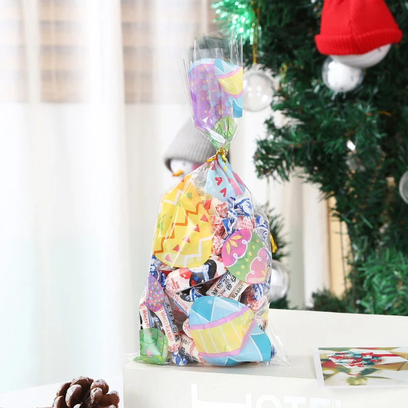 50 шт. пасхальные украшения целлофановые мешочки с изображением кролика и яиц куриных печати мешки подарка Счастливой Пасхи вечерние конфетные посылка выпечки Сумки