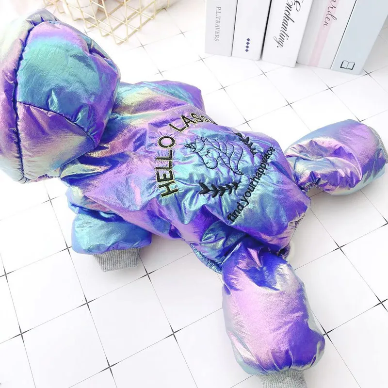 Модный яркий пуховик для собак Зимний комбинезон для собак Водонепроницаемая толстовка одежда для собак теплая куртка с хлопковой подкладкой костюмы для питомцев