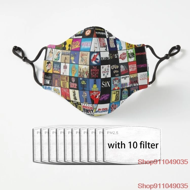 Логотипы музыкального театра Бродвея, маска для лица для взрослых ручной работы, многоразовая Роскошная маска для лица из полиэстера с фильтром