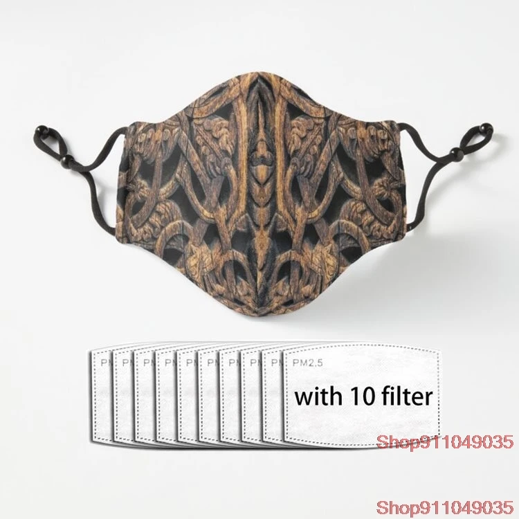 Маска МужскаяЖенская многоразовая тканевая, с резьбой по дереву