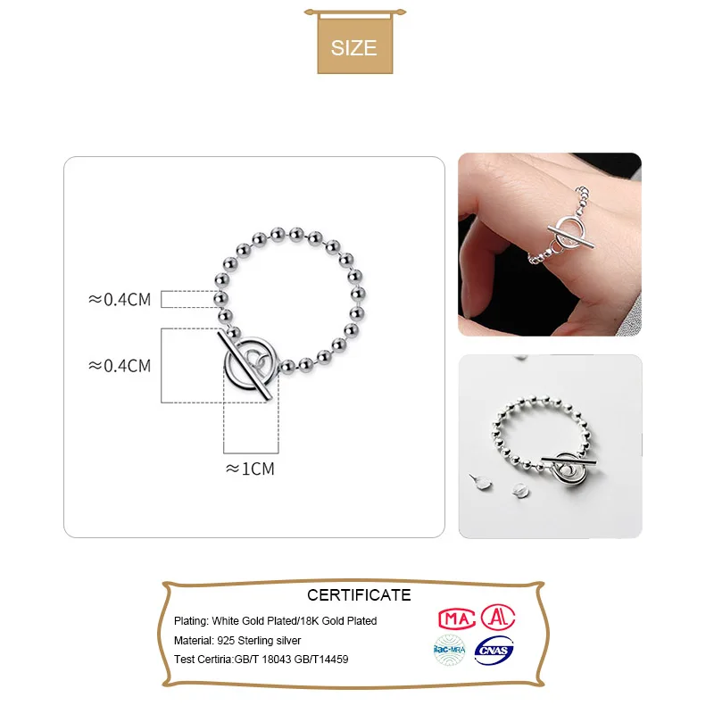 Женское кольцо из серебра 925 пробы с круглыми бусинами