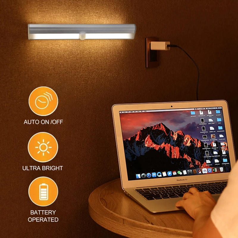 Светодиодный Ночной светильник с датчиком движения, беспроводной USB зарядка для детской спальни, декор для комнаты, ночник для дома, кухни, шкафа, шкафа, лампы