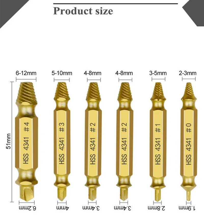 Набор сверл для извлечения поврежденных винтов, 6 шт.