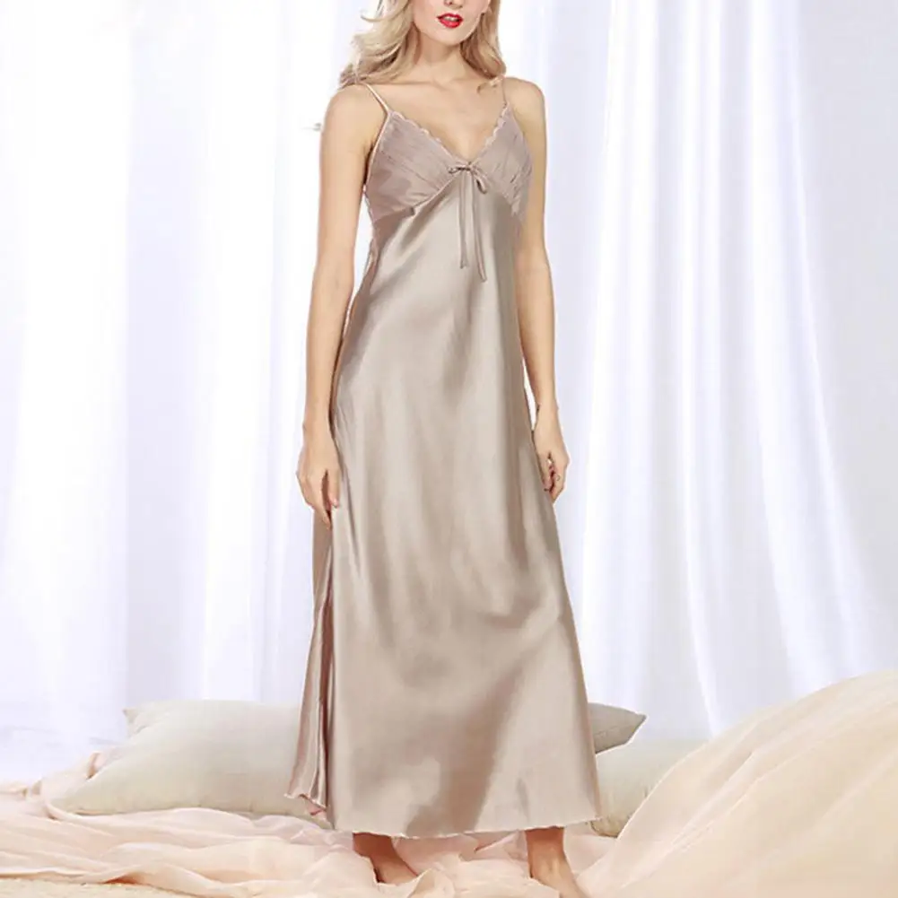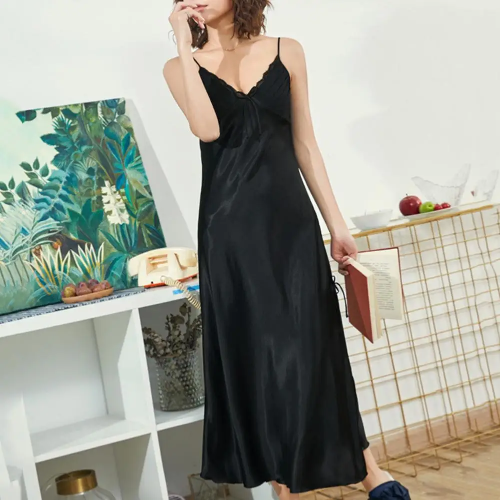 Летнее шелковое Ночное платье, женская ночная рубашка, Сексуальные Плиссированные Топы для сна с V-образным вырезом, без рукавов, женская ночная сорочка Ette femme