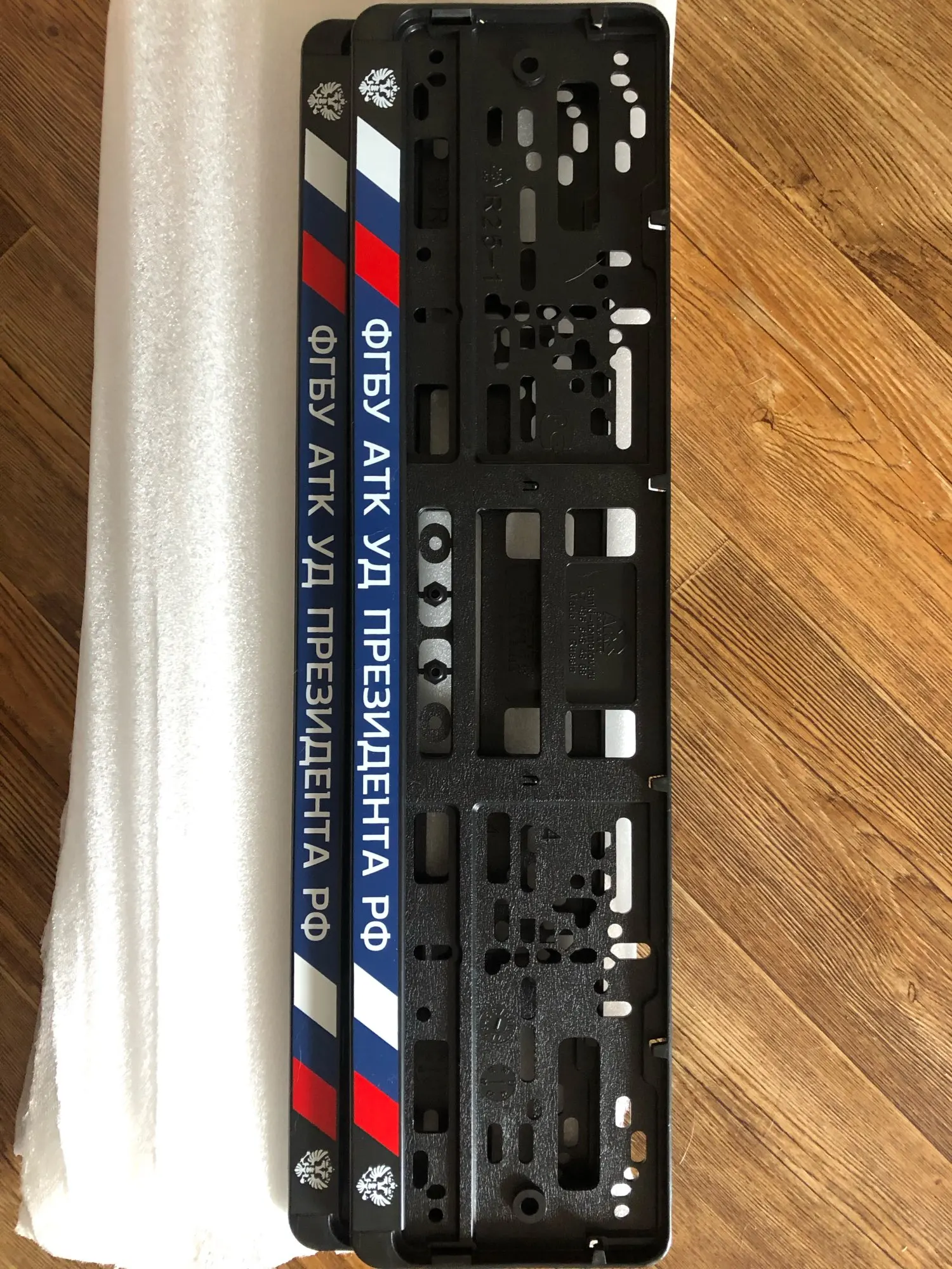Доставка быстрая, упакованы хорошо, сами рамки качественные, но по периметру номер не закрыт и в отличии от оригинала низ не откидывается, а отщелкивается. За свою цену сойдёт
