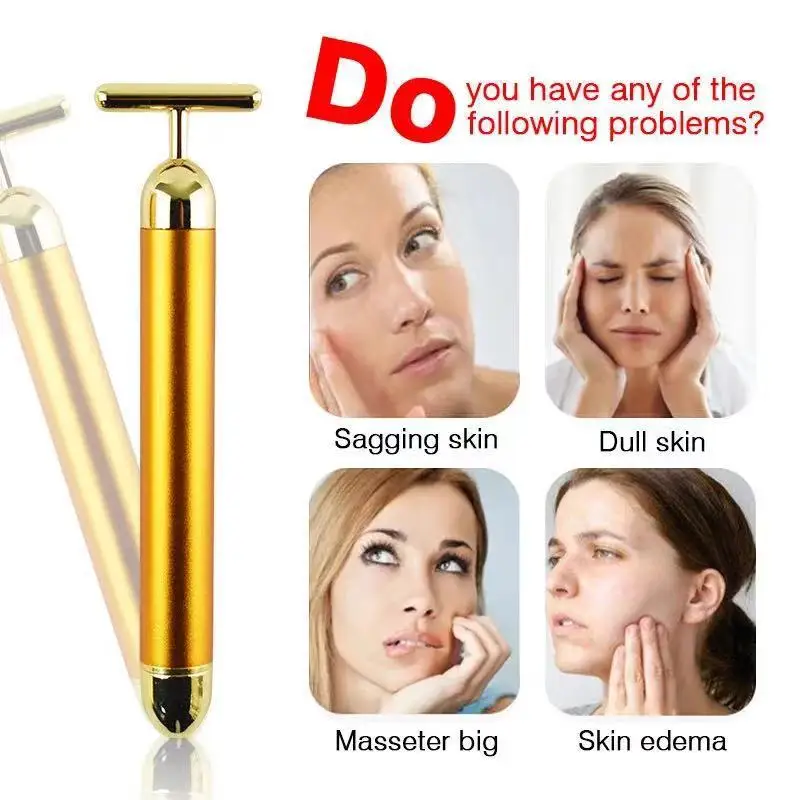 24k золотой вибрирующий роликовый массажер для лица T-образный энер...