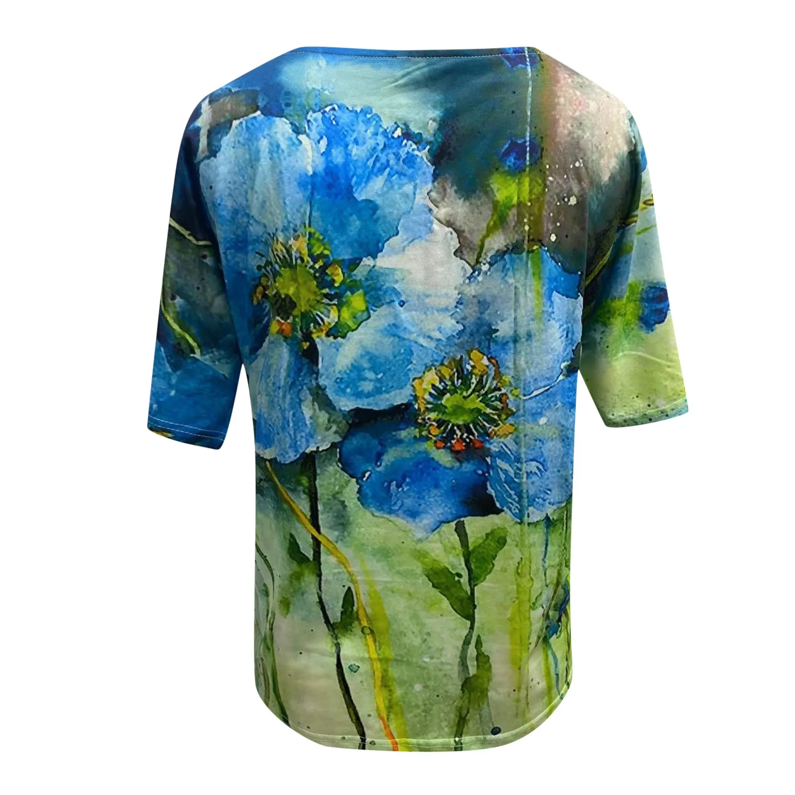 Женская футболка с цветочным 3D принтом, Летние повседневные свобод...