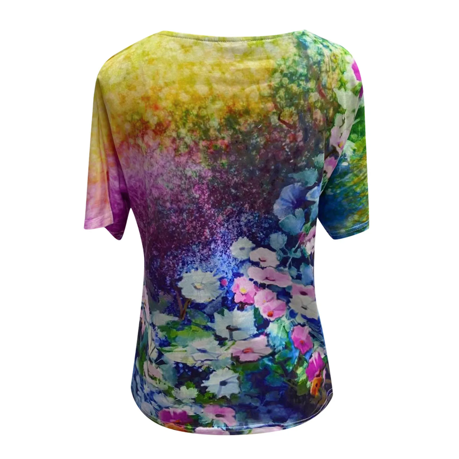 Футболка женская, с цветочным принтом, с коротким рукавом, круглым ...