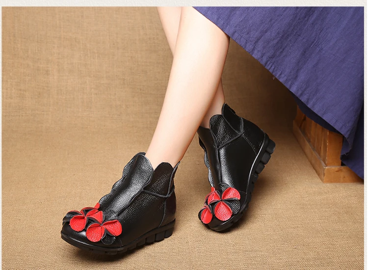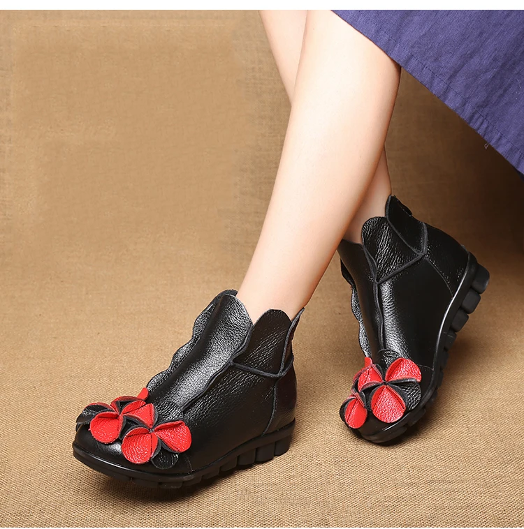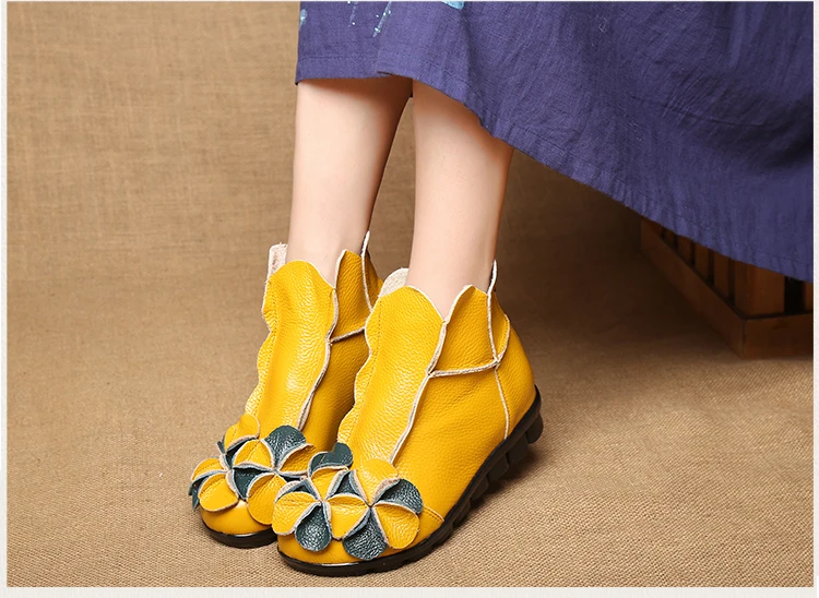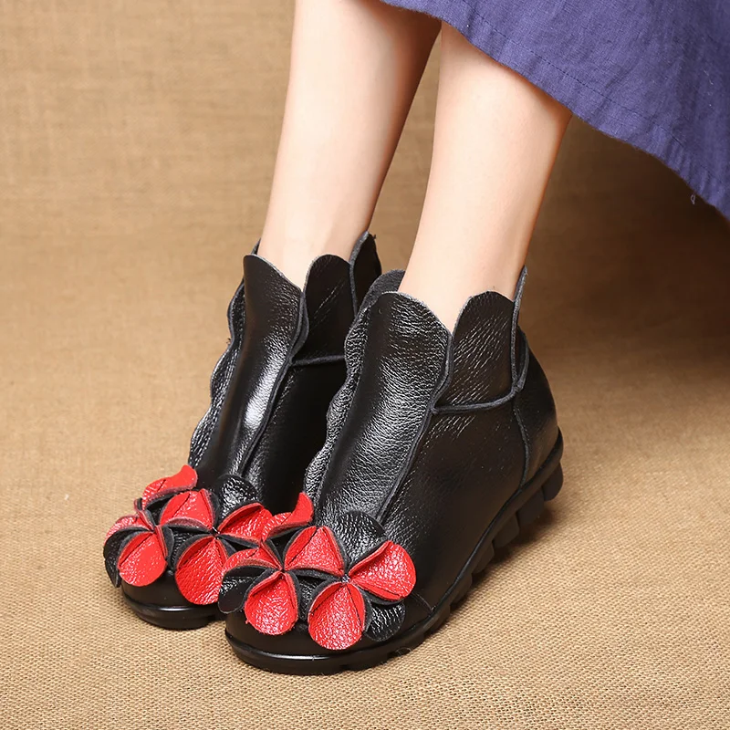 Женские ботильоны из натуральной кожи, винтажные дышащие ботинки на плоской подошве, без застежек, с цветочным узором, ручная работа, весна 2021