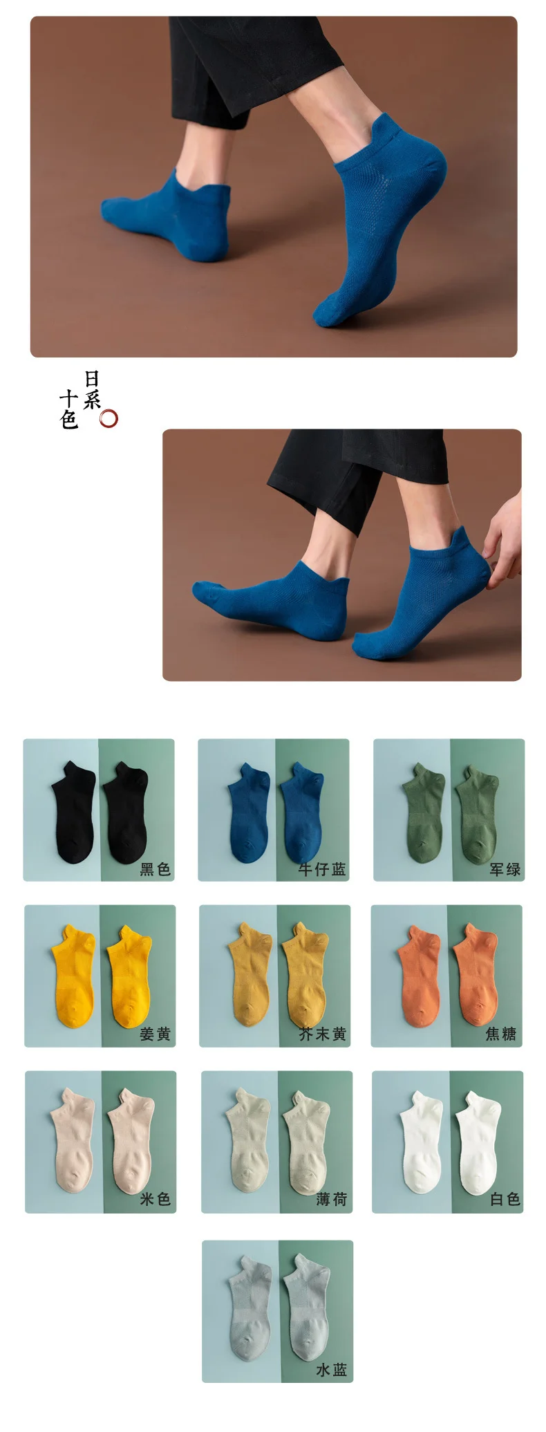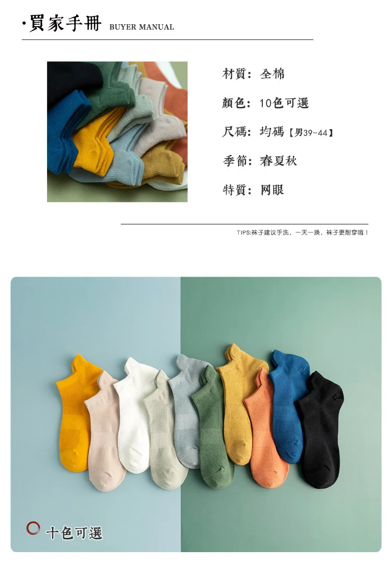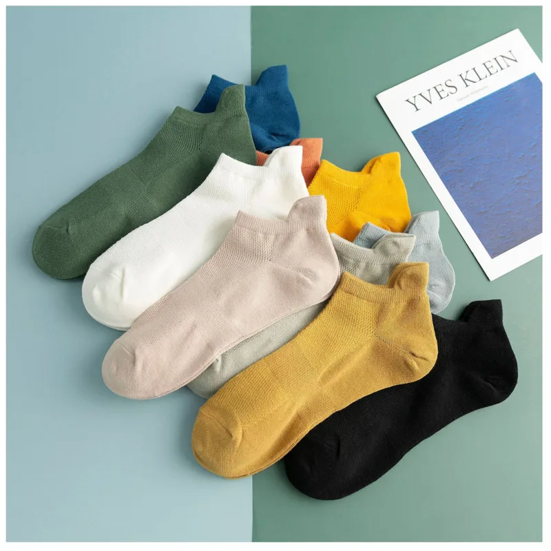 Носки мужские хлопковые воздухопроницаемые, удобные повседневные модные невидимые носки-невидимки, черные белые красные синие