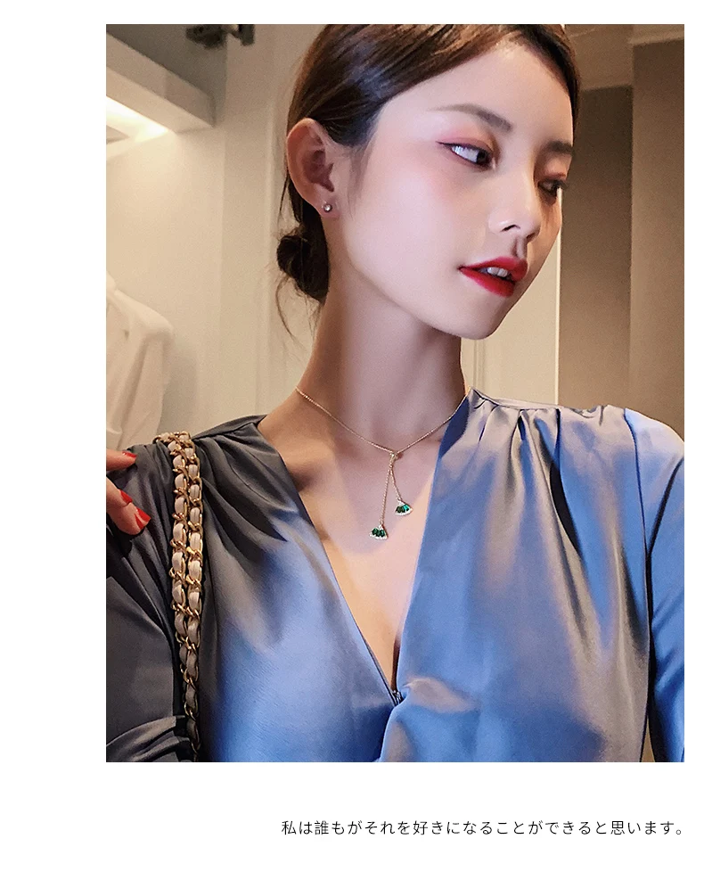 Женское Ожерелье с кулоном-веером, классическое ожерелье с кулоном в виде веера из зеленого хрусталя для вечерние и модные корейские драгоценности, сексуальное ожерелье на цепочке для девушек, 2021