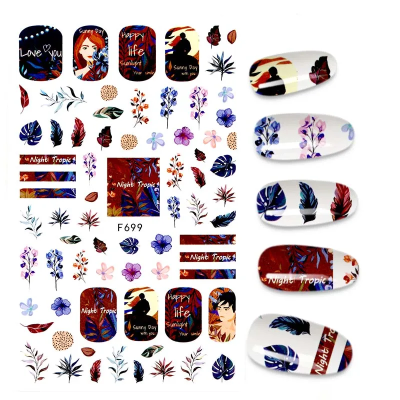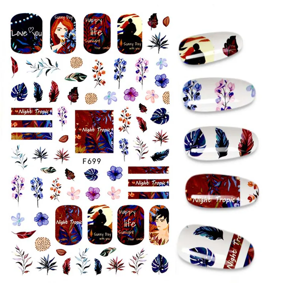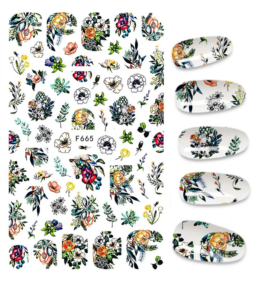 1 шт., самоклеящиеся 3D-Наклейки для ногтей, с изображением цветов, роз, Листьев, бабочек