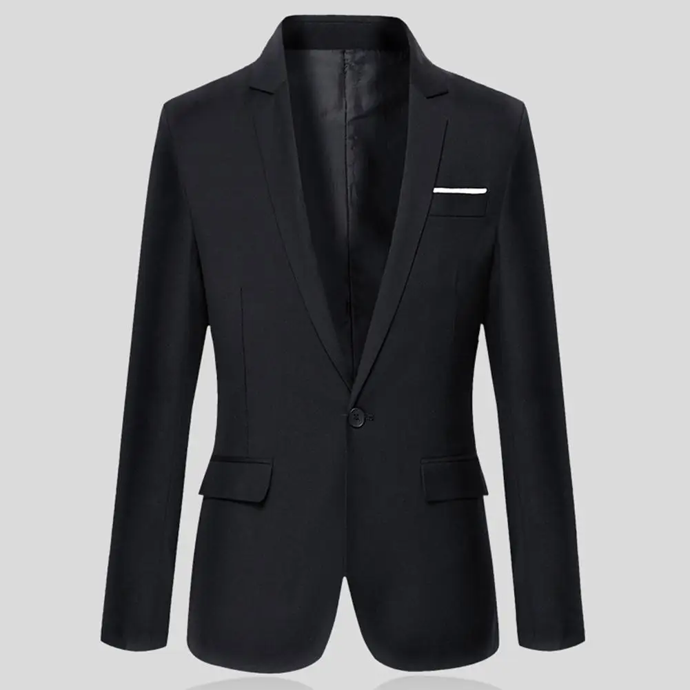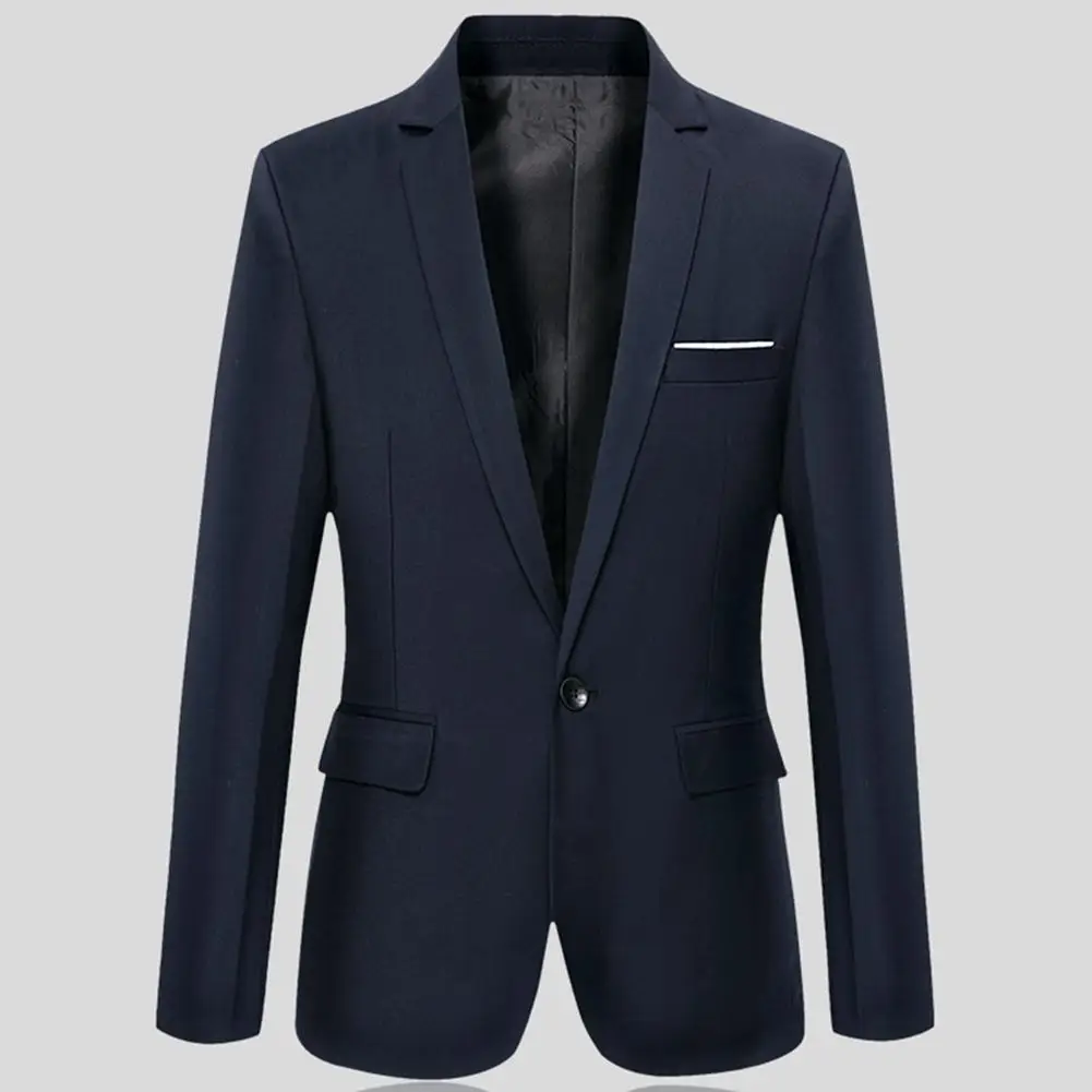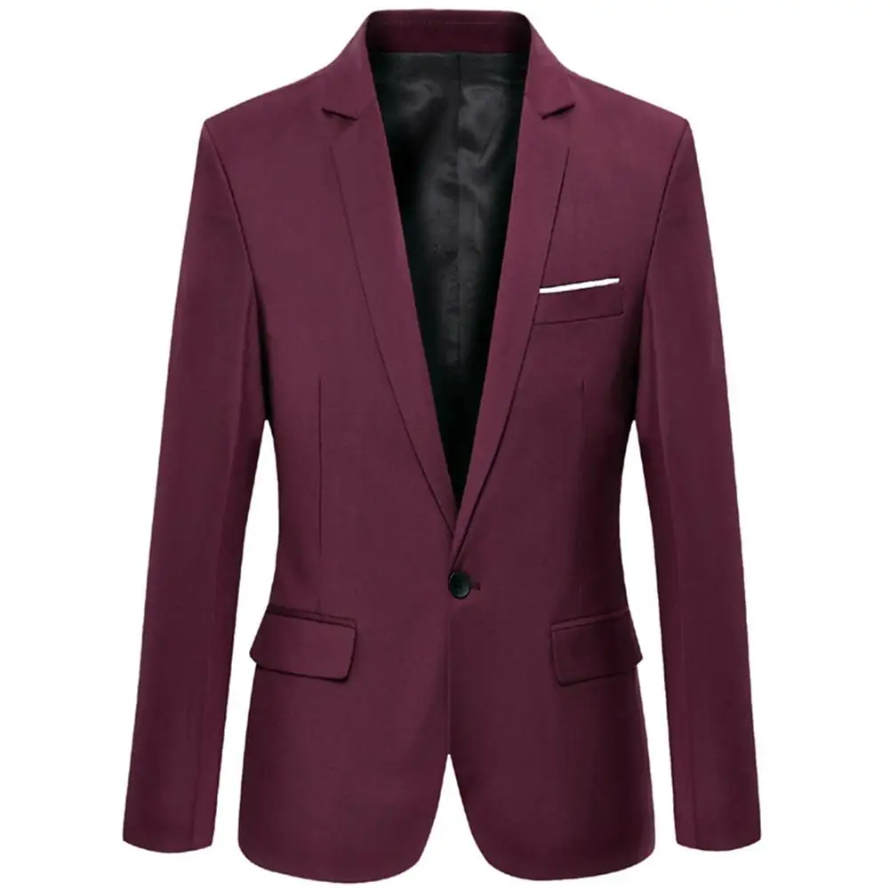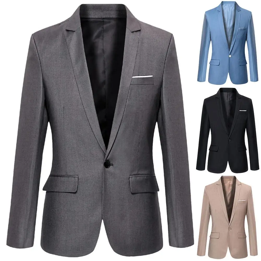 Модный мужской однотонный приталенный Блейзер с длинным рукавом и отложным воротником, Костюмный пиджак, верхняя одежда
