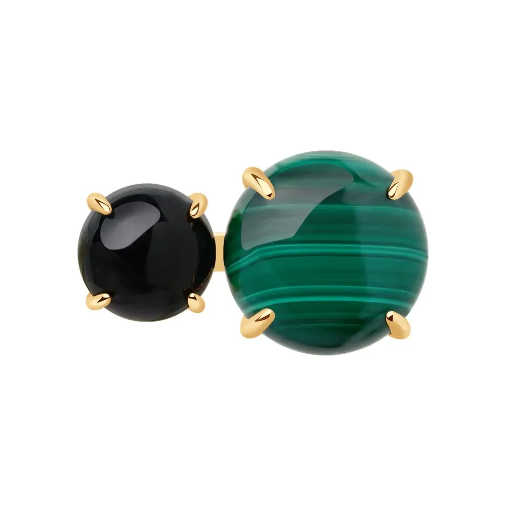 Кольцо SOKOLOV из золочёного серебра с агатом и малахитом