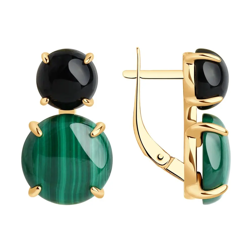 Серьги SOKOLOV из золочёного серебра с агатами и малахитами, Серебро, 925, Женские, Серьги 2022 тренд, Оригинальная продукция