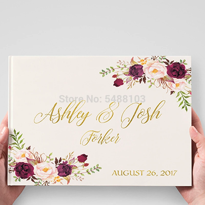 Свадебная Гостевая книга с цветочным рисунком, индивидуальный фотоа...