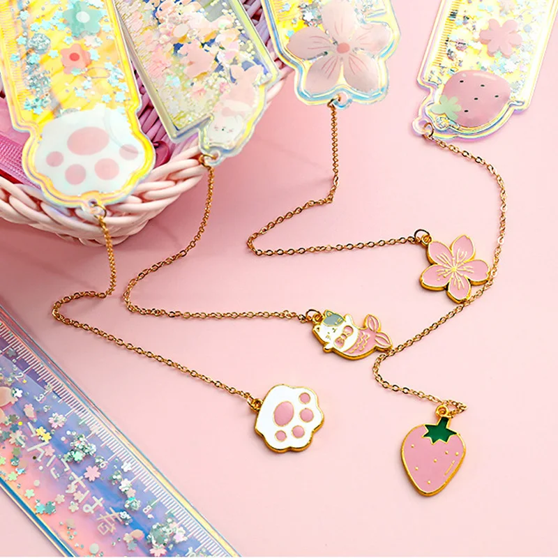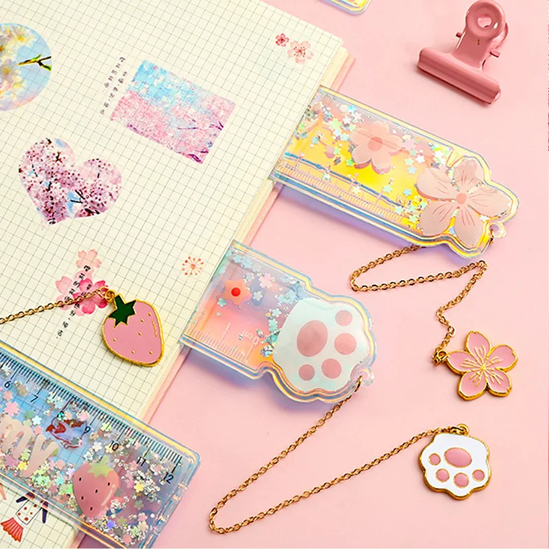 Креативные многофункциональные закладки в виде кота, вишни, 12 см, подвеска с линейкой, с блестками, для девочек, подарок, милые Канцтовары