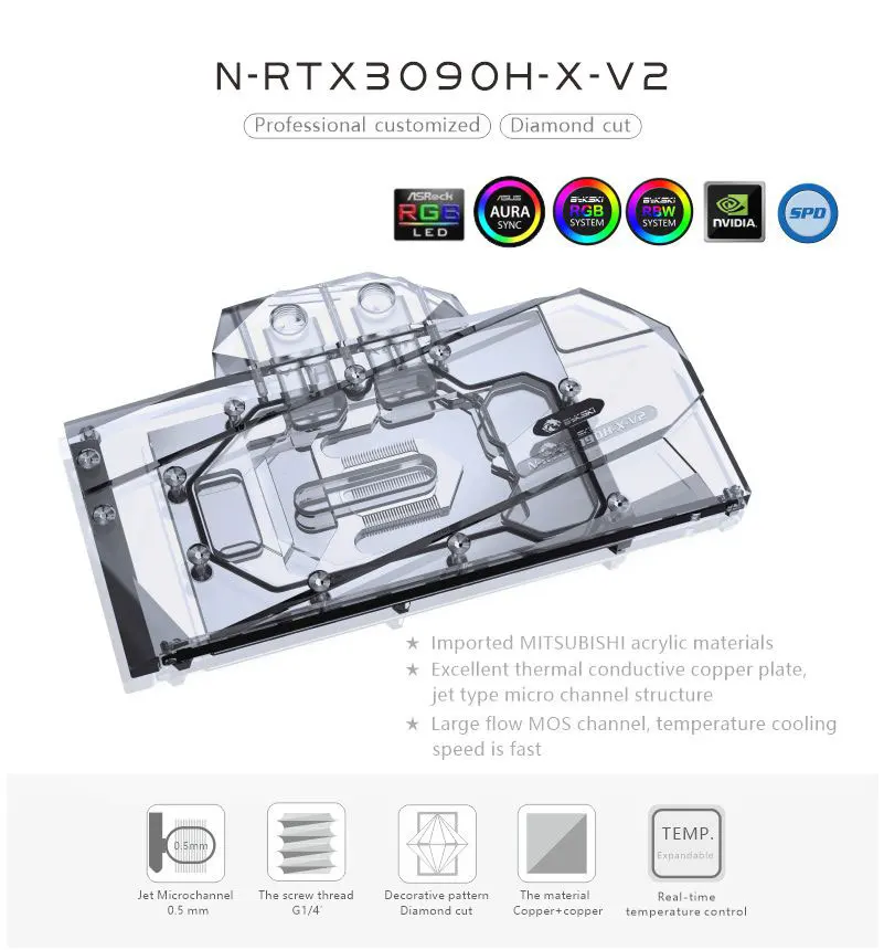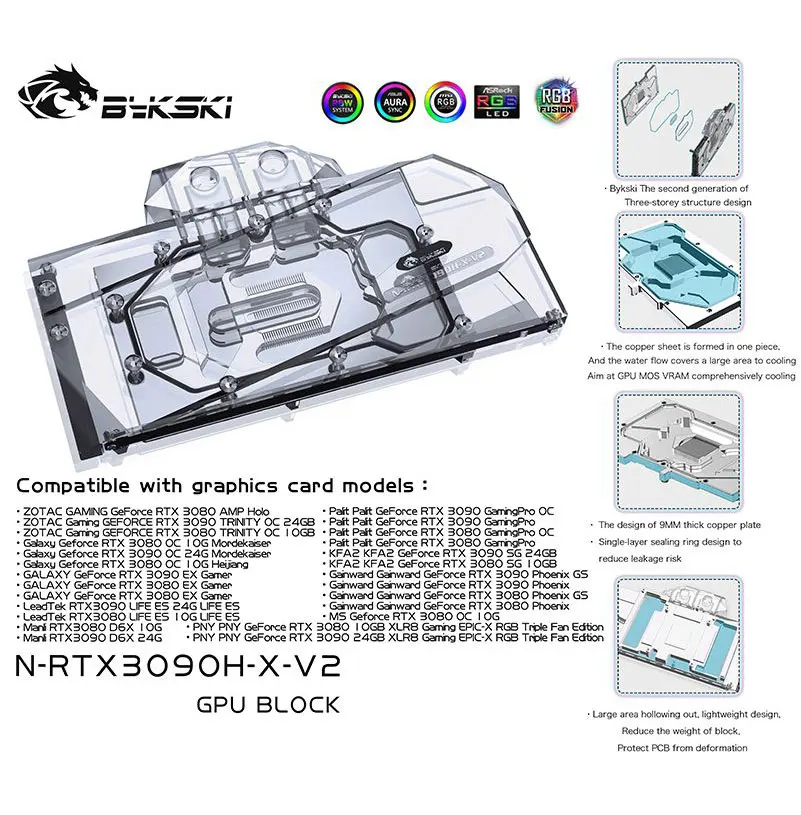 Bykski N-RTX3090H-X-V2 блок водяного охлаждения GPU для справки RTX 3080 3090