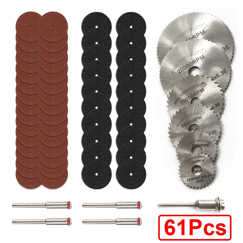 61 шт.компл. металлические режущие диски, лезвие для циркулярной пилы из быстрорежущей стали, Деревообрабатывающие инструменты для мини-дрели Dremel, вращающиеся аксессуары для электроинструмента