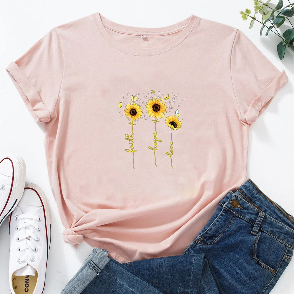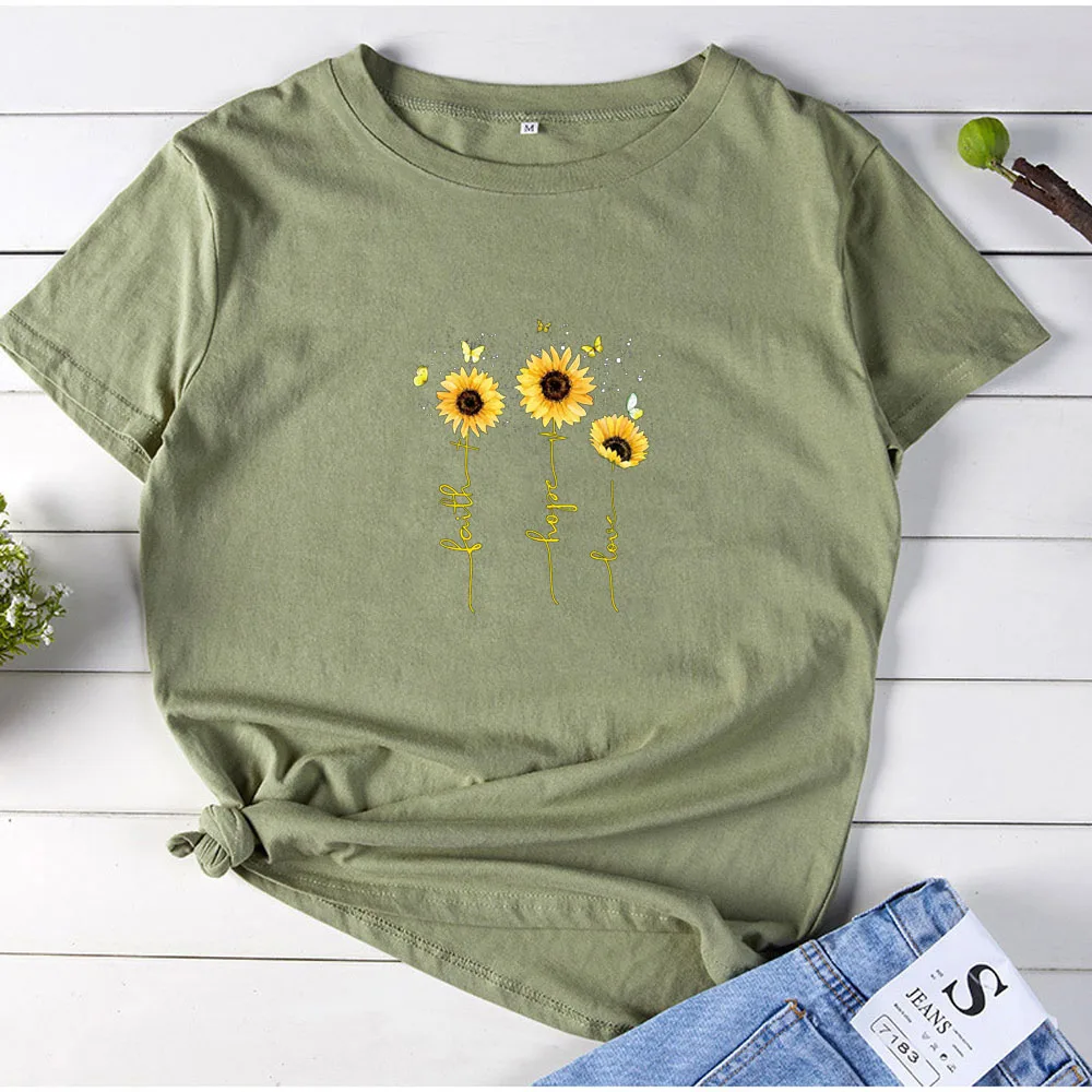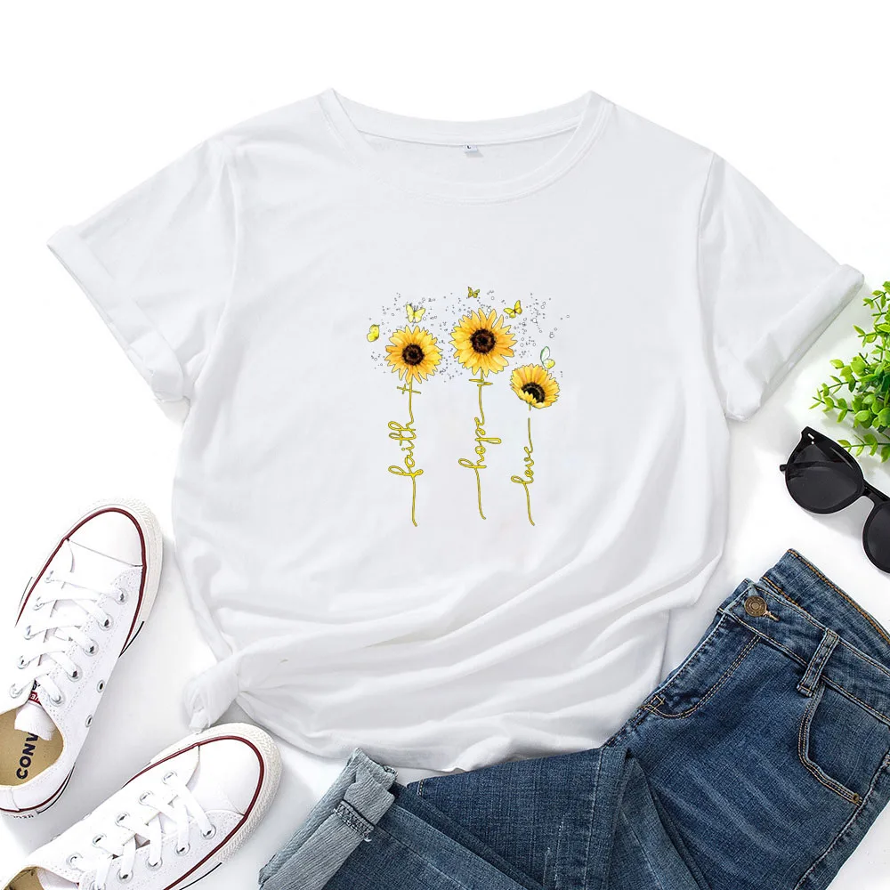 Футболка женская с принтом подсолнуха, Модная хлопковая Свободная рубашка с узором, винтажная в стиле Харадзюку