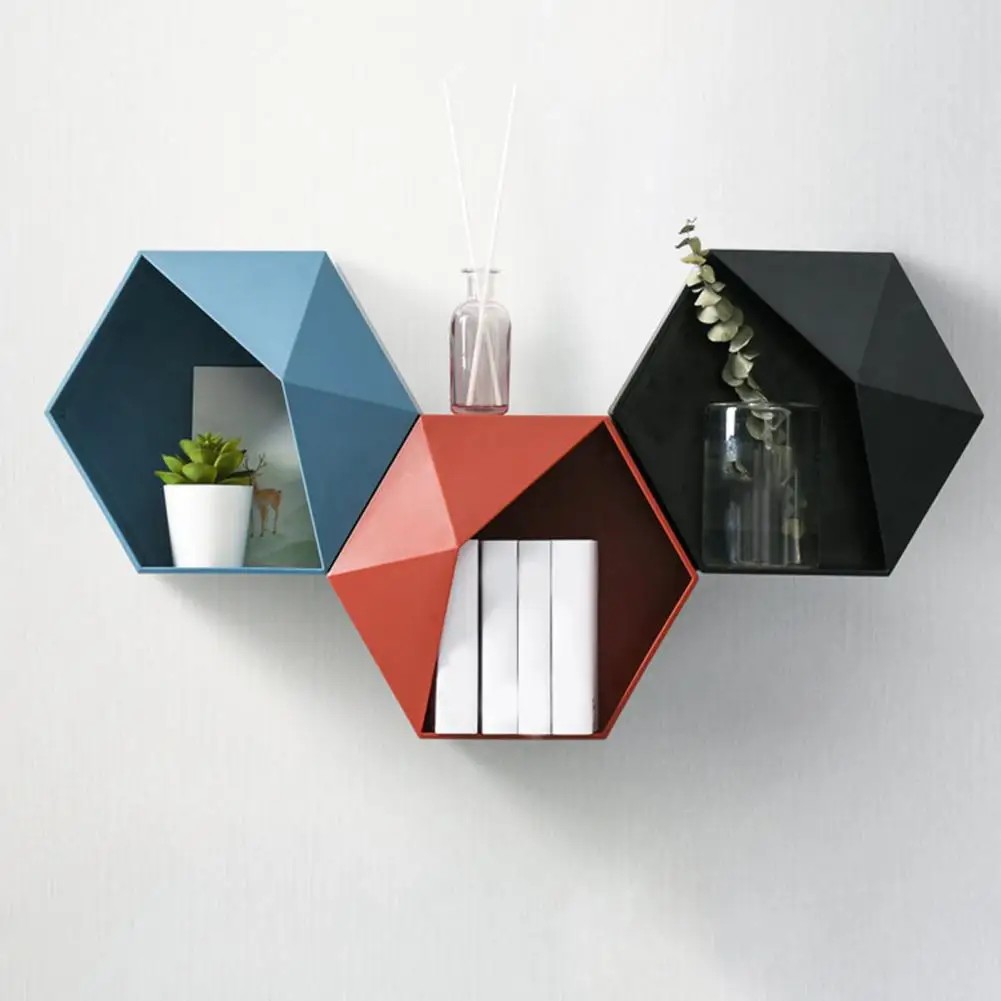 Шестиугольная настенная полка в скандинавском стиле, полки для стен, домашнего декора, геометрический Органайзер