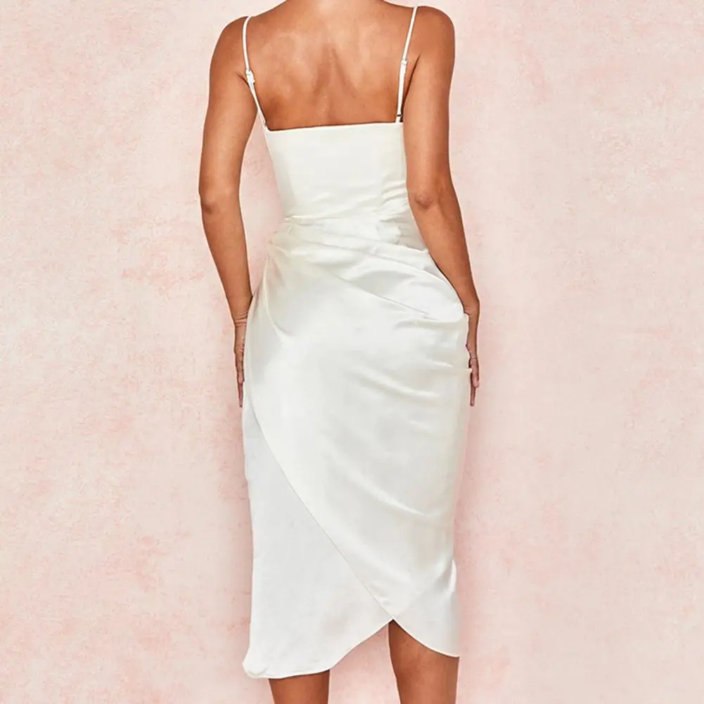 Платье средней длины с разрезом, однотонное женское летнее платье на бретелях