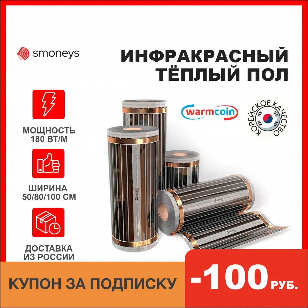 Инфракрасная теплого пола WarmCoin ширина 5080100 см, под ламинат, ковер, линолеум, Корея кабель для подогрева, терморегулятор